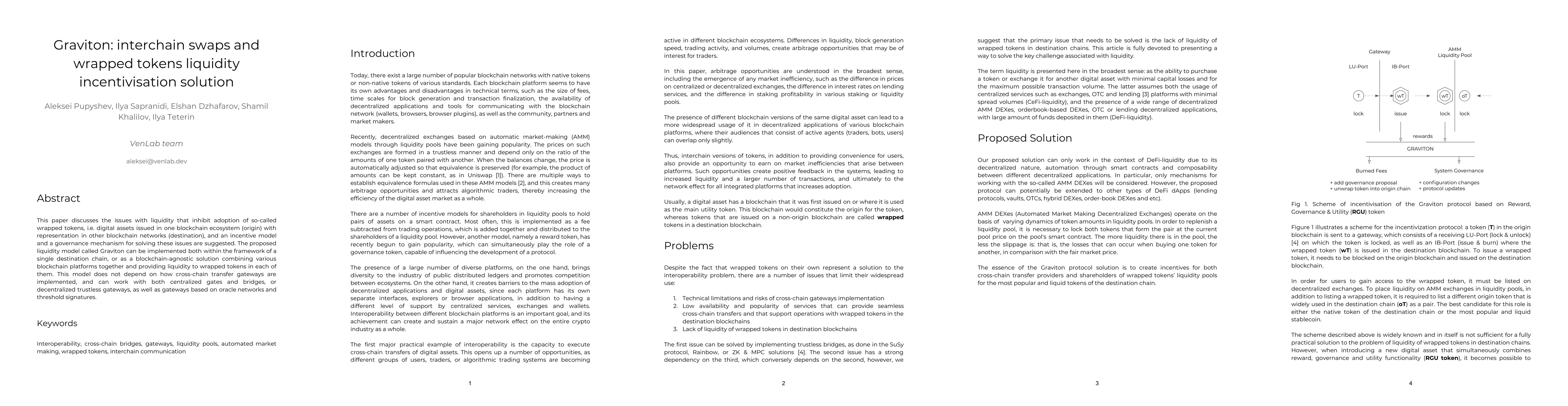 This paper discusses the issues with liquidity that inhibit adoption of so-called wrapped tokens, i.e. digital assets issued in one blockchain ecosystem (origin) with representation in other blockchain networks (destination), and an incentive model and a governance mechanism for solving these issues are suggested. The proposed liquidity model called Graviton can be implemented both within the framework of a single destination chain, or as a blockchain-agnostic solution combining various blockchain platforms together and providing liquidity to wrapped tokens in each of them. This model does not depend on how cross-chain transfer gateways are implemented, and can work with both centralized gates and bridges, or decentralized trustless gateways, as well as gateways based on oracle networks and threshold signatures.