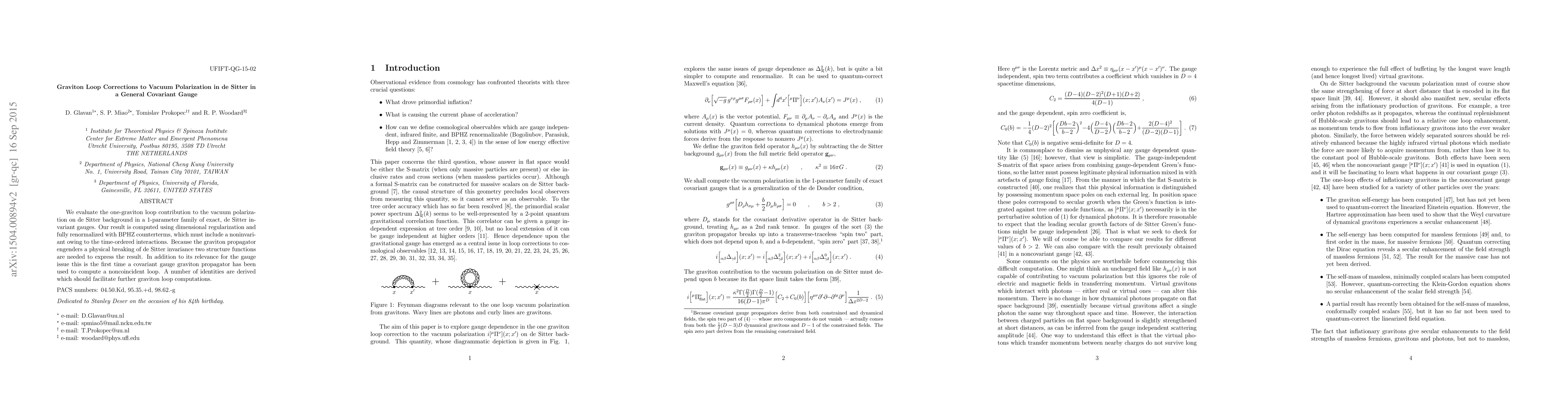 This paper evaluates the one-graviton loop correction to vacuum polarization in de Sitter space using a general covariant gauge, employing dimensional regularization and BPHZ renormalization. It introduces a noninvariant counterterm due to time-ordered interactions and derives new identities to facilitate future graviton loop calculations.