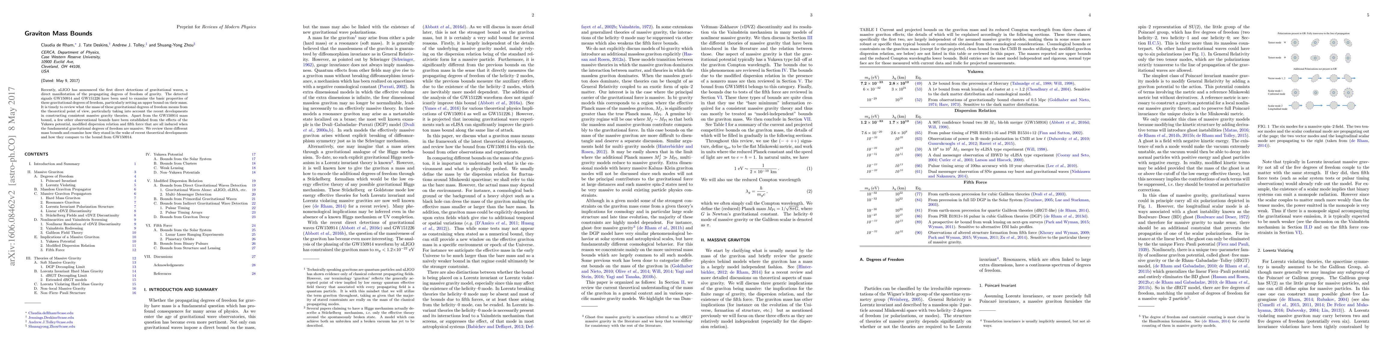 Recently, aLIGO has announced the first direct detections of gravitational waves, a direct manifestation of the propagating degrees of freedom of gravity. The detected signals GW150914 and GW151226 have been used to examine the basic properties of these gravitational degrees of freedom, particularly setting an upper bound on their mass. It is timely to review what the mass of these gravitational degrees of freedom means from the theoretical point of view, particularly taking into account the recent developments in constructing consistent massive gravity theories. Apart from the GW150914 mass bound, a few other observational bounds have been established from the effects of the Yukawa potential, modified dispersion relation and fifth force that are all induced when the fundamental gravitational degrees of freedom are massive. We review these different mass bounds and examine how they stand in the wake of recent theoretical developments and how they compare to the bound from GW150914.