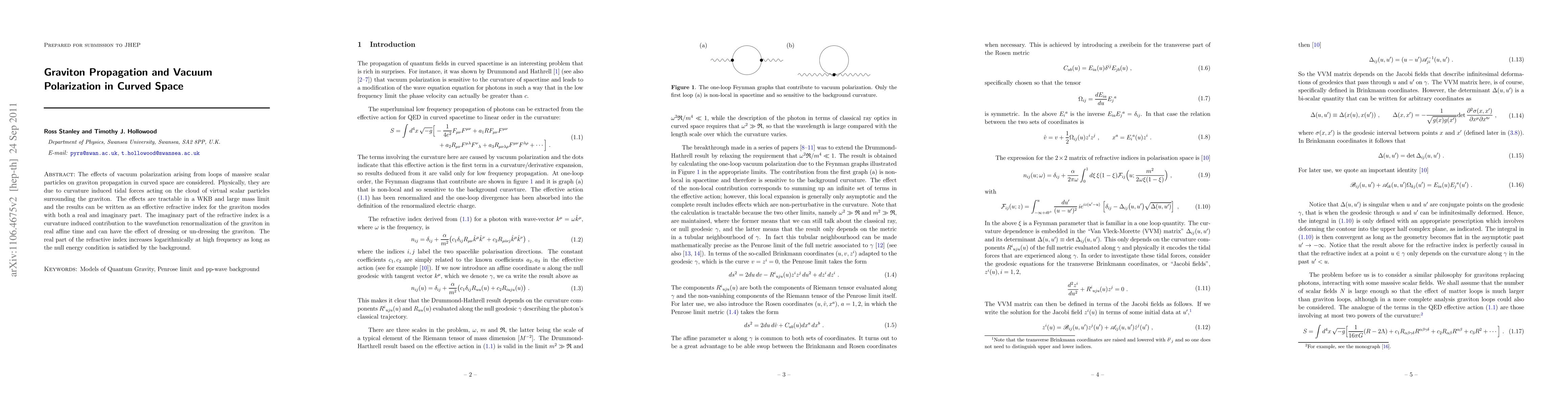 The research considers the effects of vacuum polarization from massive scalar particle loops on graviton propagation in curved space, utilizing WKB approximation and large mass limit to derive an effective refractive index with real and imaginary parts.