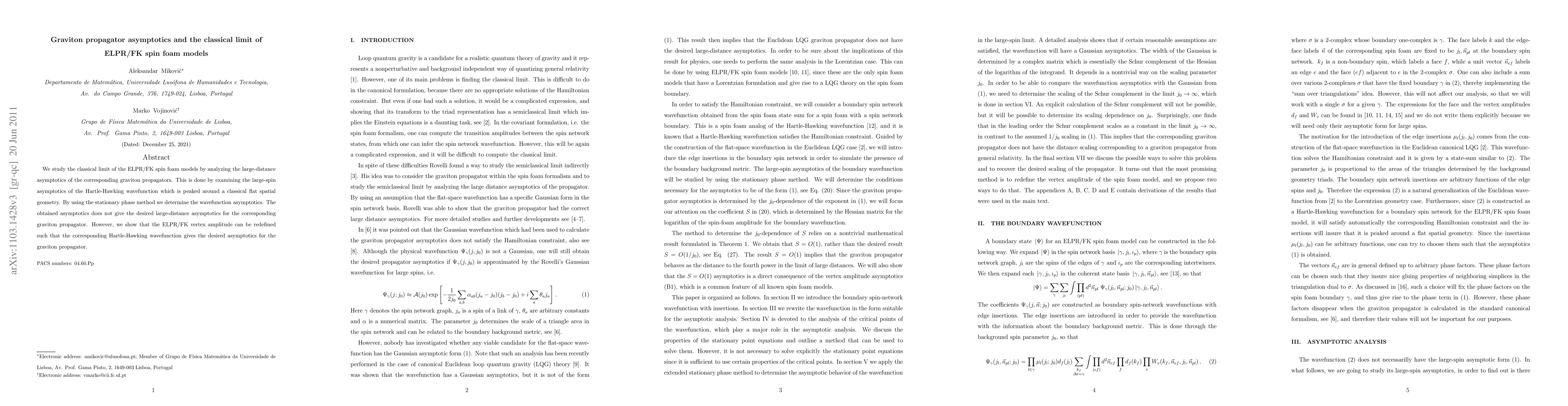 This paper investigates the classical limit of ELPR/FK spin foam models through the large-distance asymptotics of graviton propagators, finding that the original vertex amplitude lacks the desired asymptotics. It proposes a redefinition of the vertex amplitude to achieve the required asymptotics for the graviton propagator.