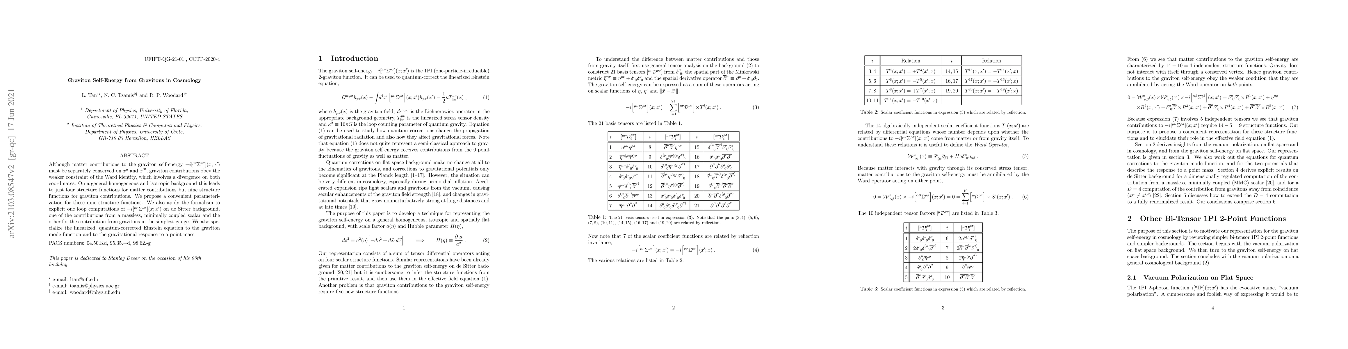 The paper proposes a parameterization for nine structure functions of graviton contributions to the graviton self-energy, distinct from the four structure functions for matter contributions, using the Ward identity constraint in a homogeneous and isotropic background. It applies this formalism to one-loop computations on de Sitter background for contributions from a massless, minimally coupled scalar and gravitons in the simplest gauge.