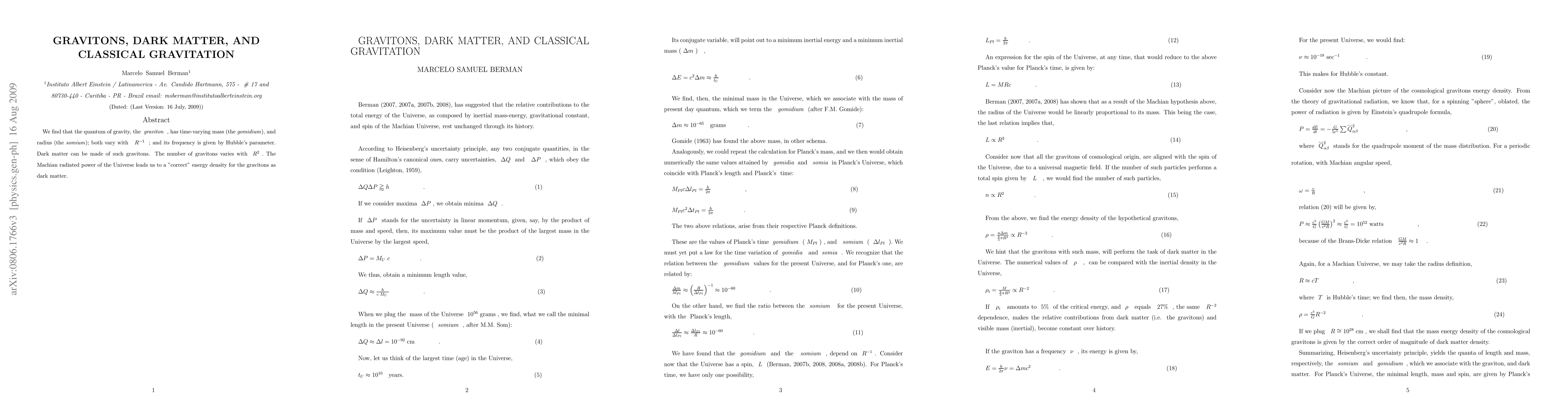 We find that the quantum of gravity, the graviton, has time-varying mass (the gomidium), and radius (the somium); both vary with the inverse of R; and its frequency is given by Hubble's parameter. Dark matter can be made of such gravitons. The number of gravitons varies with R-squared . The Machian radiated power of the Universe leads us to a "correct" energy density for the gravitons as dark matter.