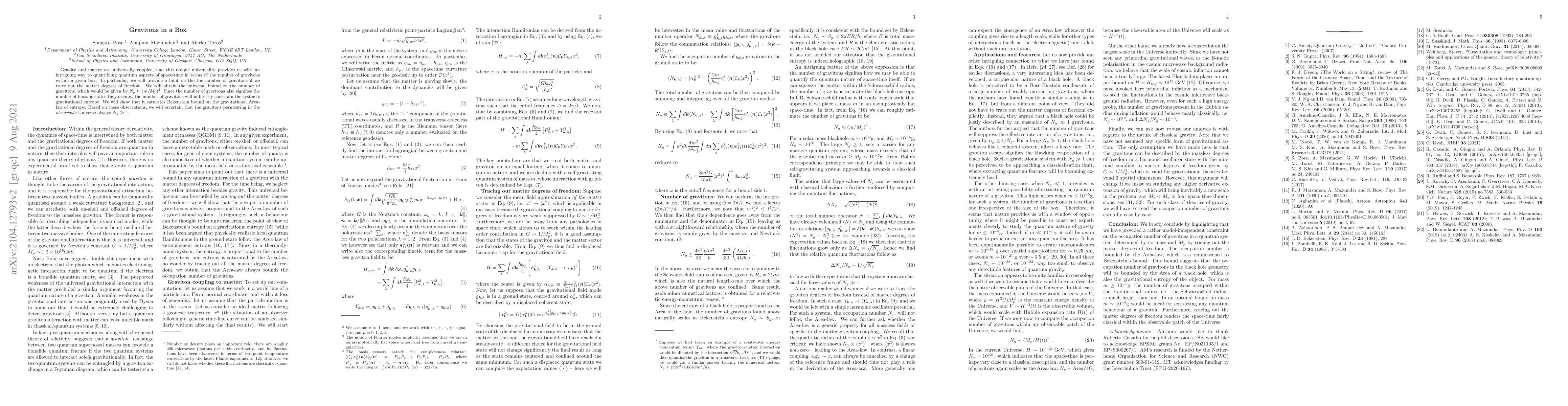 Researchers found a way to estimate the number of gravitons in a box, suggesting that these particles permeate the observable universe in large numbers. The study's results imply that the gravitational entropy of the universe is bounded by the Bekenstein bound.