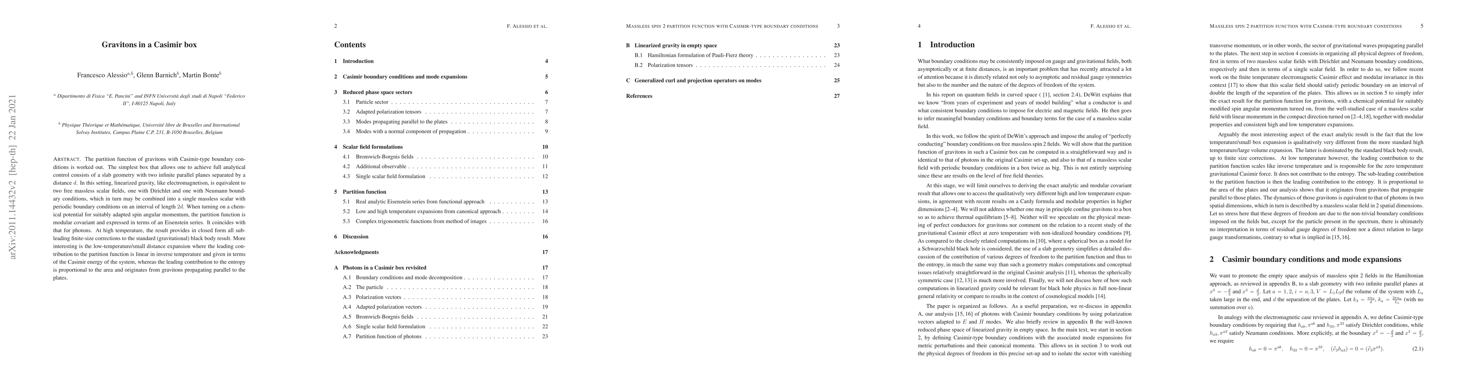 The paper presents a detailed Hamiltonian analysis of gravitons with Casimir-type boundary conditions, establishing a partition function and demonstrating its modular covariance.