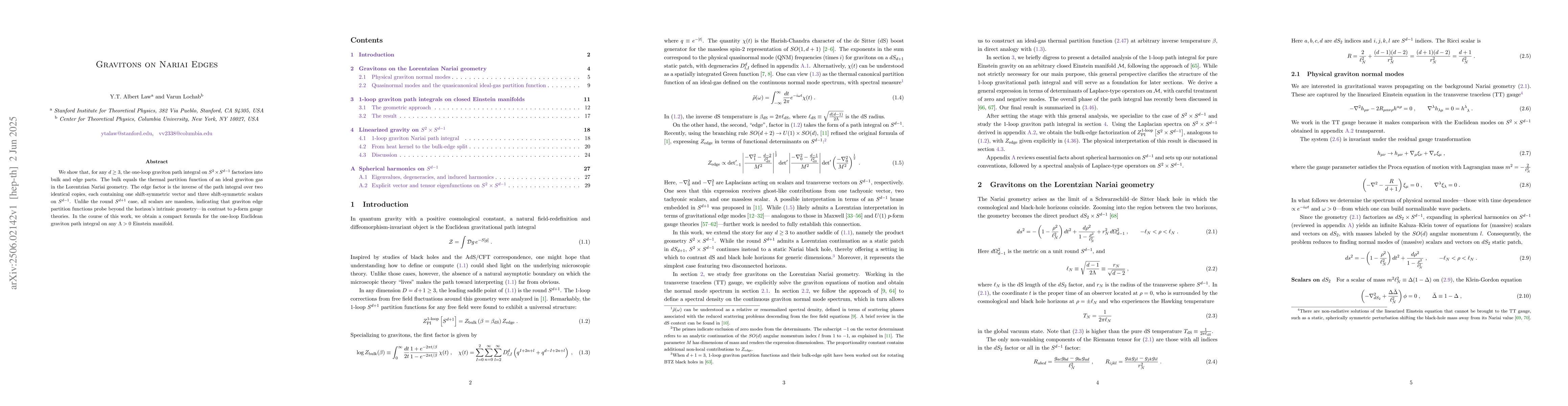 Researchers show that gravitons on Nariai edges factorize into bulk and edge parts, with the edge part probing beyond the horizon's intrinsic geometry, distinct from other gauge theories.