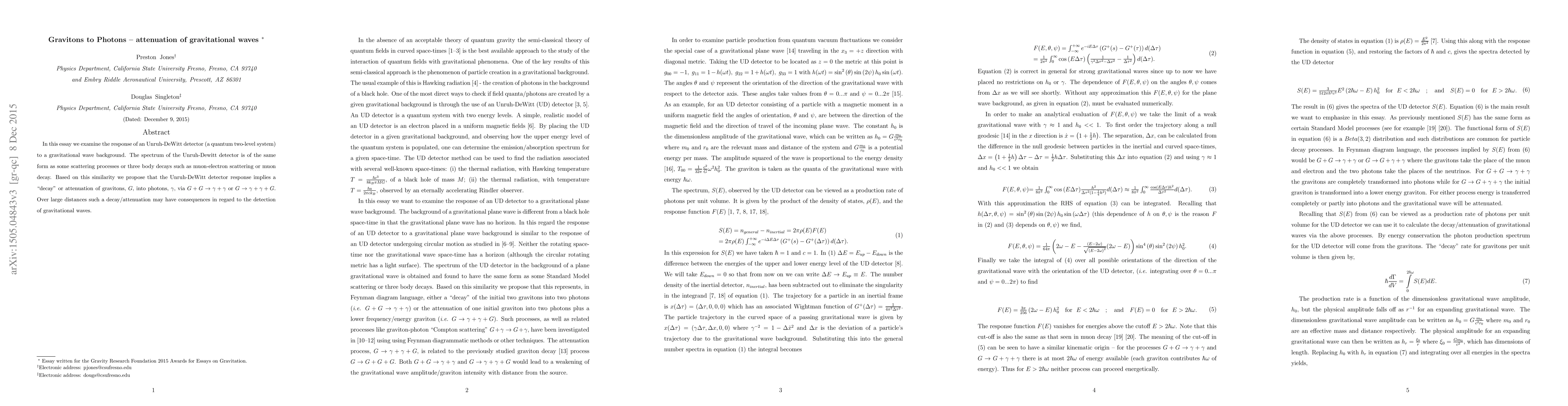 The paper derives the response function and spectrum of an Unruh-DeWitt detector interacting with a gravitational plane wave, revealing a decay mechanism for gravitons into photons and providing a semi-classical calculation of the mean path length for graviton decay.