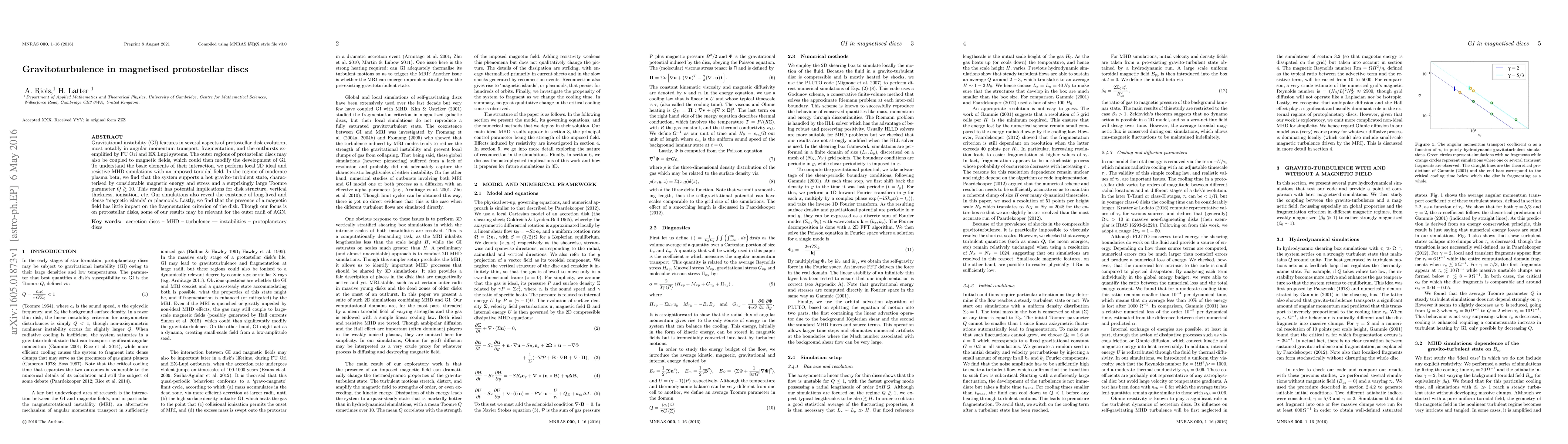 This paper explores the interaction between gravitational instability and magnetic fields in protostellar discs, finding that gravitoturbulence can develop in the presence of a toroidal field, leading to dense magnetic islands and influencing disk structure and vertical thickness. The study's results suggest limited impact on fragmentation but may also apply to the outer regions of AGN discs.