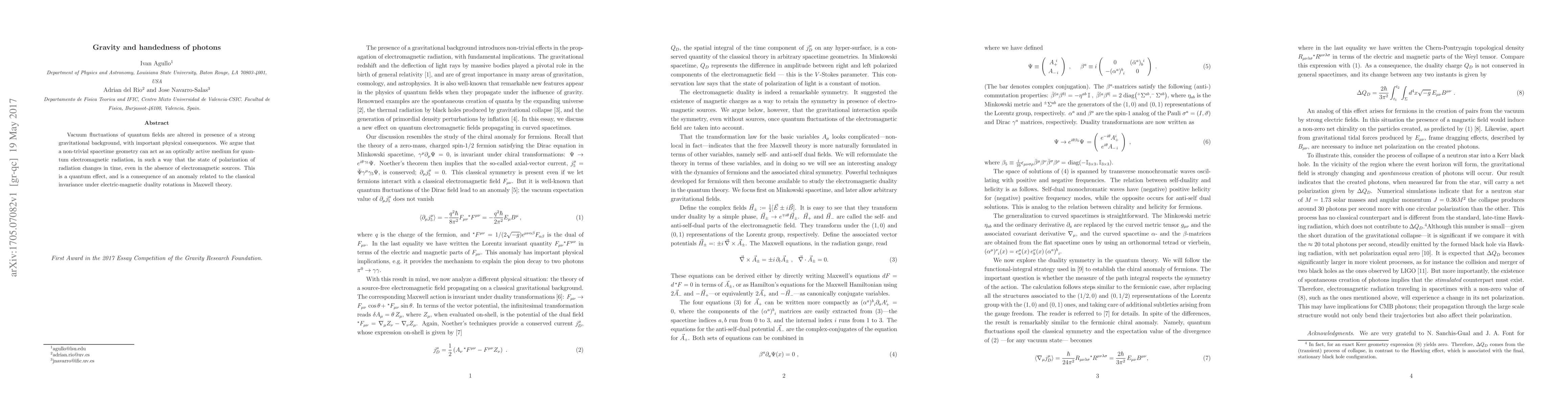 Vacuum fluctuations of quantum fields are altered in presence of a strong gravitational background, with important physical consequences. We argue that a non-trivial spacetime geometry can act as an optically active medium for quantum electromagnetic radiation, in such a way that the state of polarization of radiation changes in time, even in the absence of electromagnetic sources. This is a quantum effect, and is a consequence of an anomaly related to the classical invariance under electric-magnetic duality rotations in Maxwell theory.
