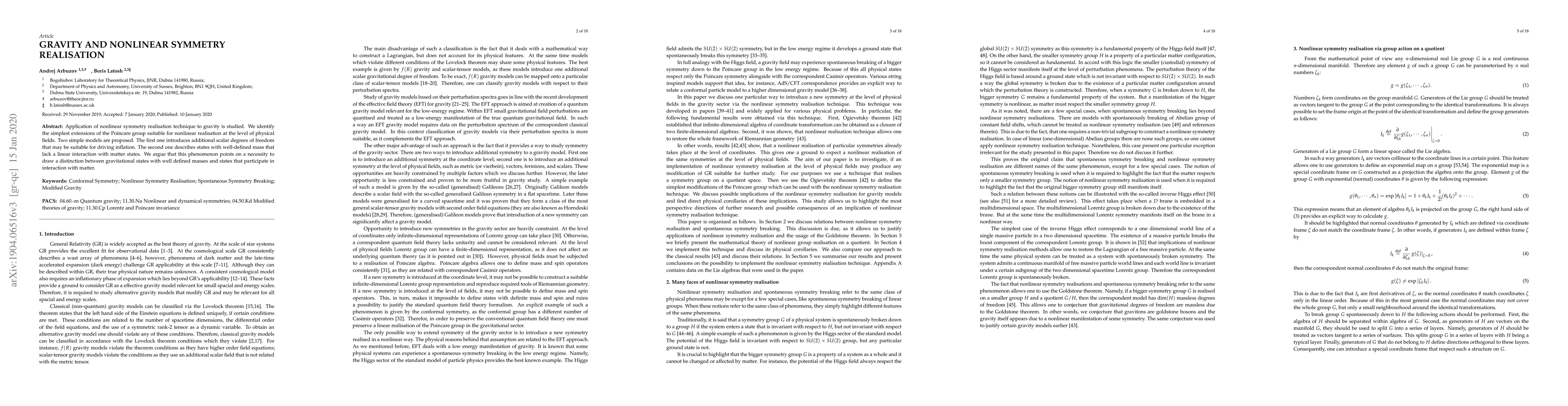 Application of nonlinear symmetry realisation technique to gravity is studied. We identify the simplest extensions of the Poincare group suitable for nonlinear realisation. Among them only one model is suitable for description of massless spin-2 states. This model, unlike general relativity, describes states with well-defined mass that lack a linear interaction with the matter states. We argue that this phenomenon points on a necessity to draw a distinction between gravitational states with well defined masses and states that participate in interaction with matter.