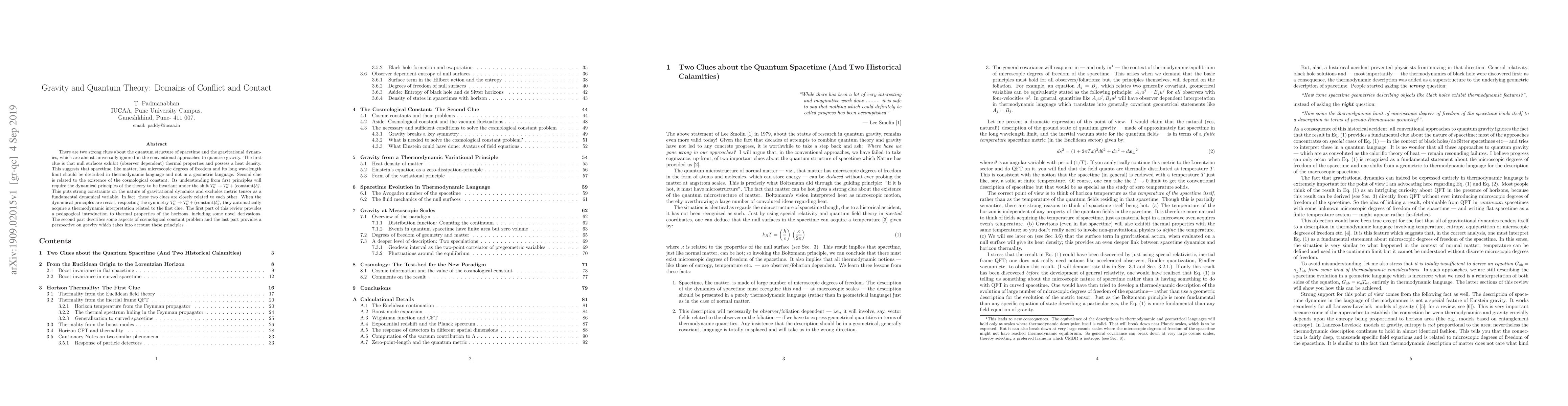 There are two strong clues about the quantum structure of spacetime and the gravitational dynamics, which are almost universally ignored in the conventional approaches to quantize gravity. The first clue is that null surfaces exhibit (observer dependent) thermal properties and possess a heat density. This suggests that spacetime, like matter, has microscopic degrees of freedom and its long wavelength limit should be described in thermodynamic language and not in a geometric language. Second clue is related to the existence of the cosmological constant. Its understanding from first principles will require the dynamical principles of the theory to be invariant under the shift $T^a_b \to T^a_b + (constant) \delta^a_b$. This puts strong constraints on the nature of gravitational dynamics and excludes metric tensor as a fundamental dynamical variable. In fact, these two clues are closely related to each other. When the dynamical principles are recast, respecting the symmetry $T^a_b \to T^a_b + (constant) \delta^a_b$, they automatically acquire a thermodynamic interpretation related to the first clue. The first part of this review provides a pedagogical introduction to thermal properties of the horizons, including some novel derivations. The second part describes some aspects of cosmological constant problem and the last part provides a perspective on gravity which takes into account these principles.