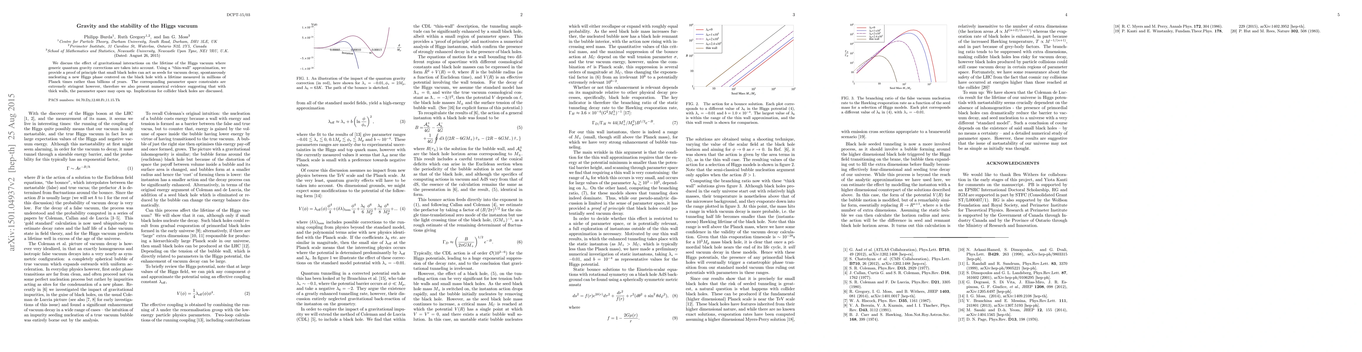 We discuss the effect of gravitational interactions on the lifetime of the Higgs vacuum where generic quantum gravity corrections are taken into account. We show how small black holes can act as seeds for vacuum decay, spontaneously nucleating a new Higgs phase centered on the black hole with a lifetime measured in millions of Planck times rather than billions of years. The constraints on parameter space of corrections to the Higgs potential are outlined, and implications for collider black holes discussed.
