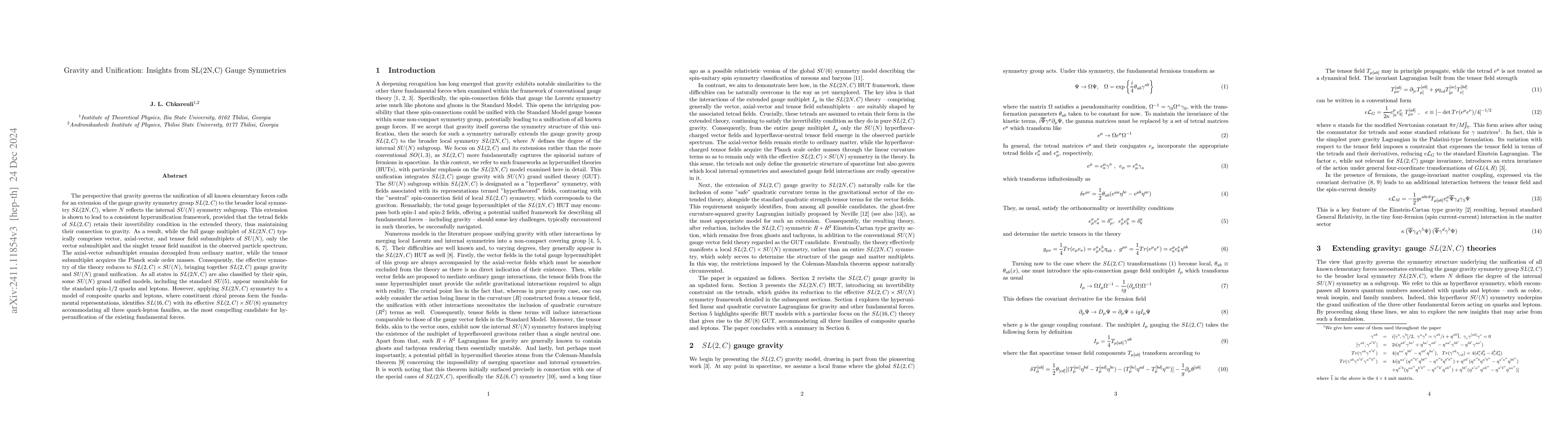 The paper introduces a new perspective on unification by extending the gauge gravity symmetry group to SL(2N,C), preserving crucial conditions in the tetrad fields to maintain a consistent hyperunification scheme.