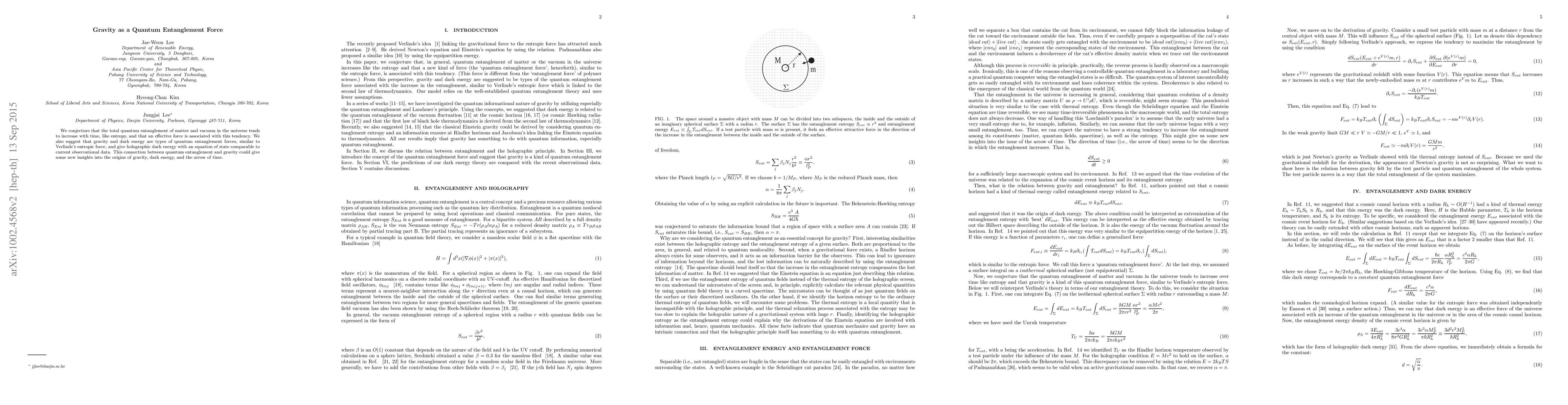 This paper proposes that gravity and dark energy arise from the quantum entanglement of matter and vacuum, suggesting an entropic force driving the increase in entanglement over time, akin to entropy, and offering a new perspective on the origins of gravity, dark energy, and the arrow of time.