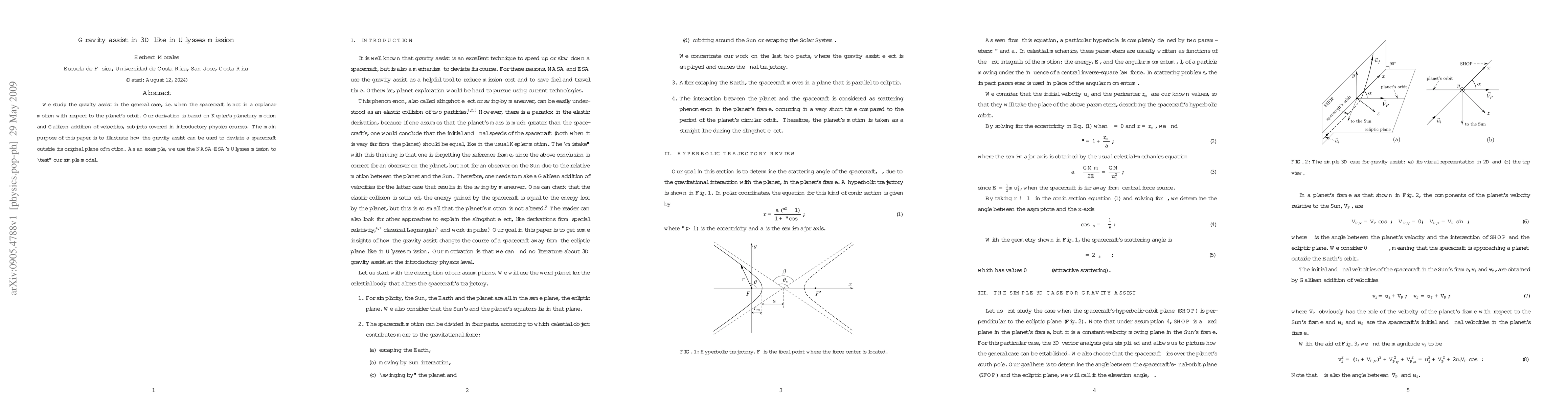 A research paper calculates how gravity assist can deviate a spacecraft outside its original plane of motion using Kepler's laws and Galilean addition of velocities. It applies this method to the NASA-ESA's Ulysses mission as an example.