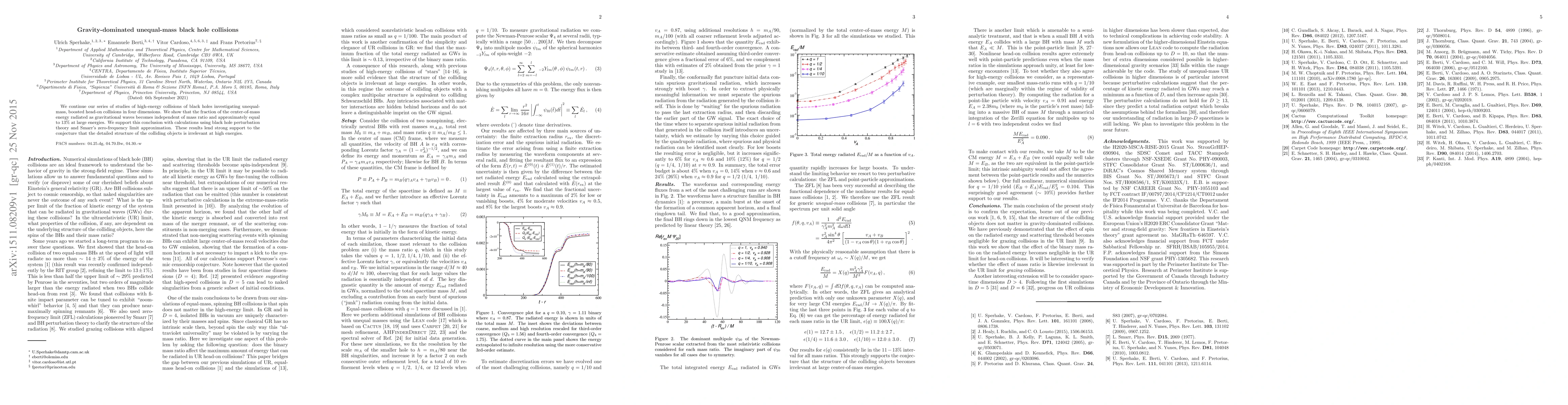 We continue our series of studies of high-energy collisions of black holes investigating unequal-mass, boosted head-on collisions in four dimensions. We show that the fraction of the center-of-mass energy radiated as gravitational waves becomes independent of mass ratio and approximately equal to $13\%$ at large energies. We support this conclusion with calculations using black hole perturbation theory and Smarr's zero-frequency limit approximation. These results lend strong support to the conjecture that the detailed structure of the colliding objects is irrelevant at high energies.