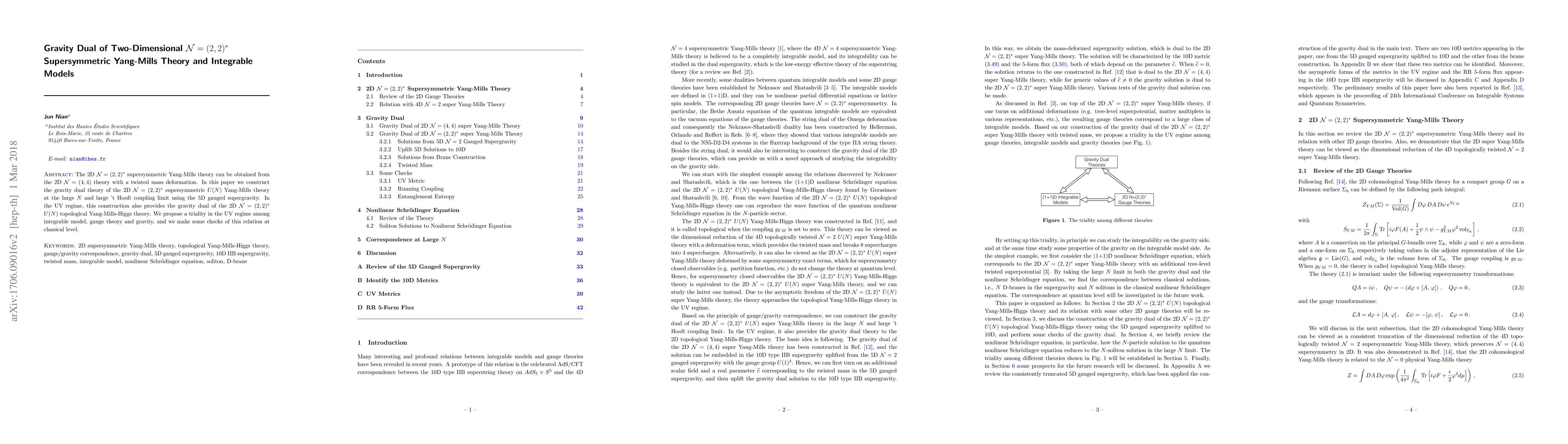 This paper constructs the gravity dual of a 2D $\mathcal{N}=(2,2)^*$ supersymmetric Yang-Mills theory using 5D gauged supergravity, proposing a triality relation among integrable models, gauge theory, and gravity in the ultraviolet regime. It also provides checks of this triality at the classical level.