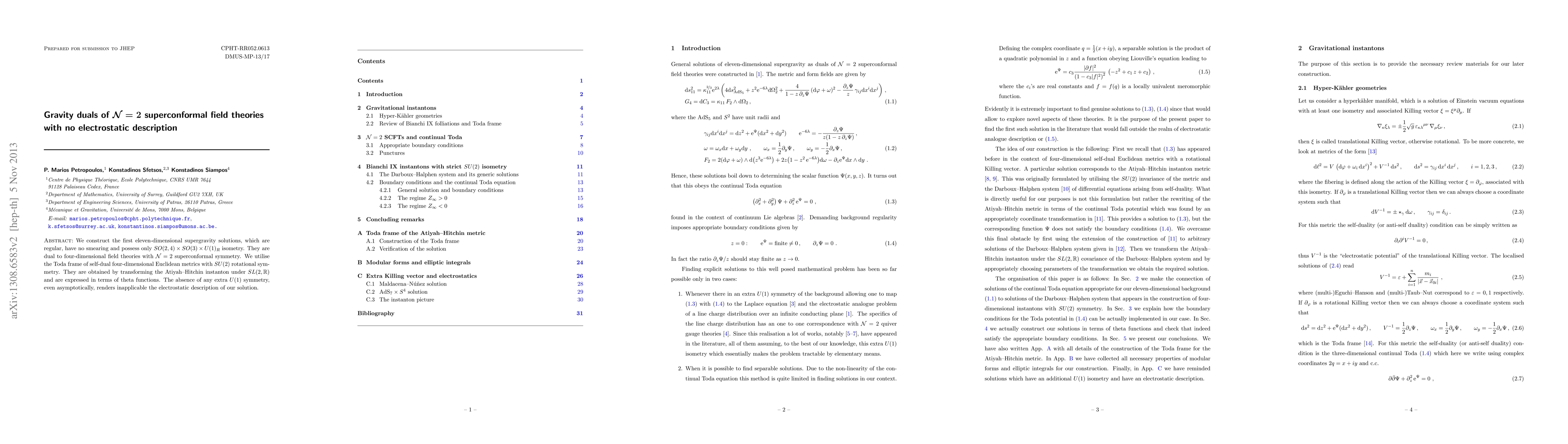 Summary: Researchers construct eleven-dimensional supergravity solutions dual to N=2 superconformal field theories without electrostatic description. These solutions, expressed in terms of theta functions, lack any additional U(1) symmetries, preventing conventional electrostatic interpretation.