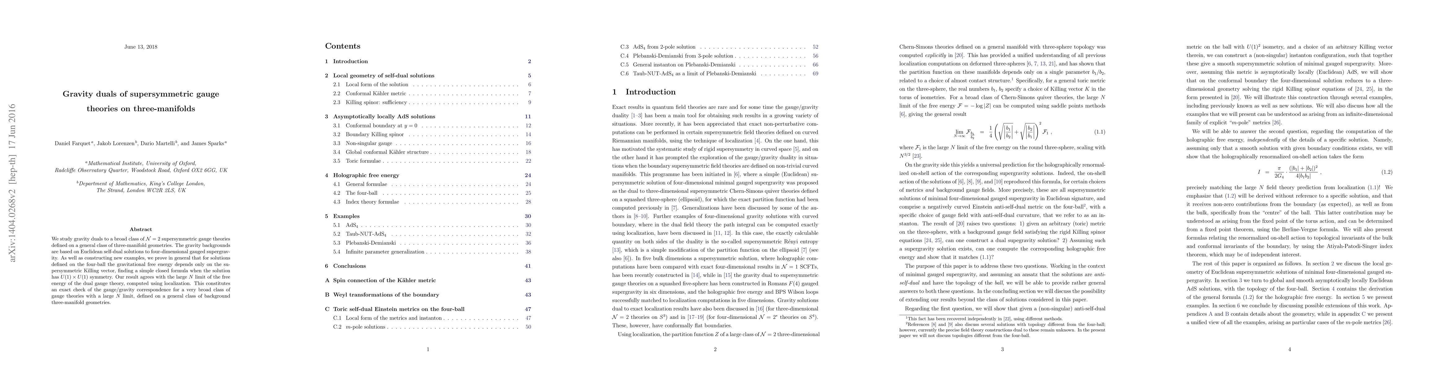 We study gravity duals to a broad class of N=2 supersymmetric gauge theories defined on a general class of three-manifold geometries. The gravity backgrounds are based on Euclidean self-dual solutions to four-dimensional gauged supergravity. As well as constructing new examples, we prove in general that for solutions defined on the four-ball the gravitational free energy depends only on the supersymmetric Killing vector, finding a simple closed formula when the solution has U(1) x U(1) symmetry. Our result agrees with the large N limit of the free energy of the dual gauge theory, computed using localization. This constitutes an exact check of the gauge/gravity correspondence for a very broad class of gauge theories with a large N limit, defined on a general class of background three-manifold geometries.