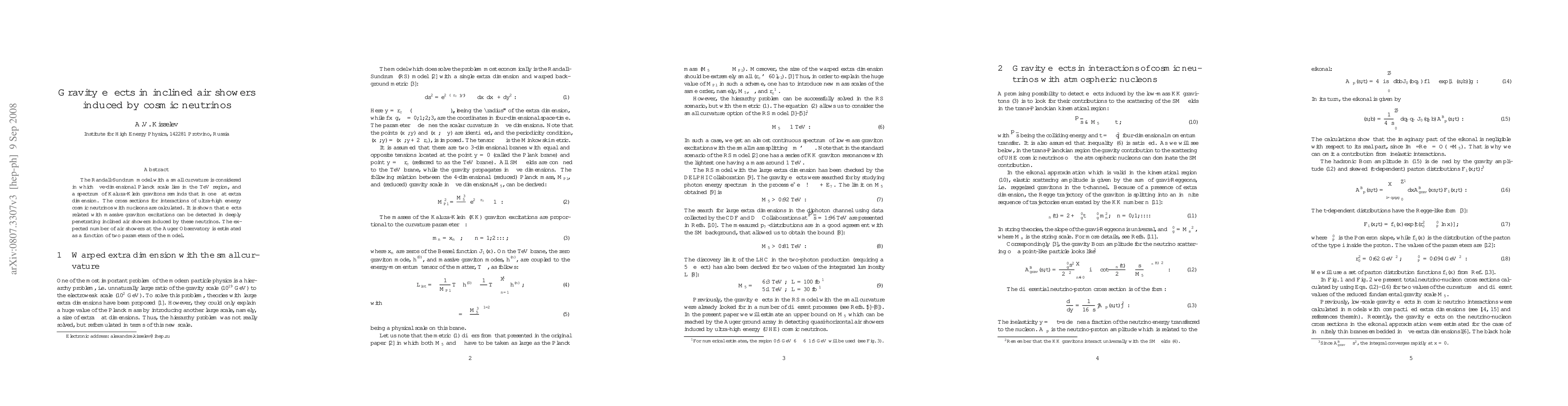 This paper investigates the effects of massive graviton excitations in the Randall-Sundrum model on inclined air showers caused by ultra-high energy cosmic neutrinos. It estimates the number of detectable air showers at the Auger Observatory based on model parameters.