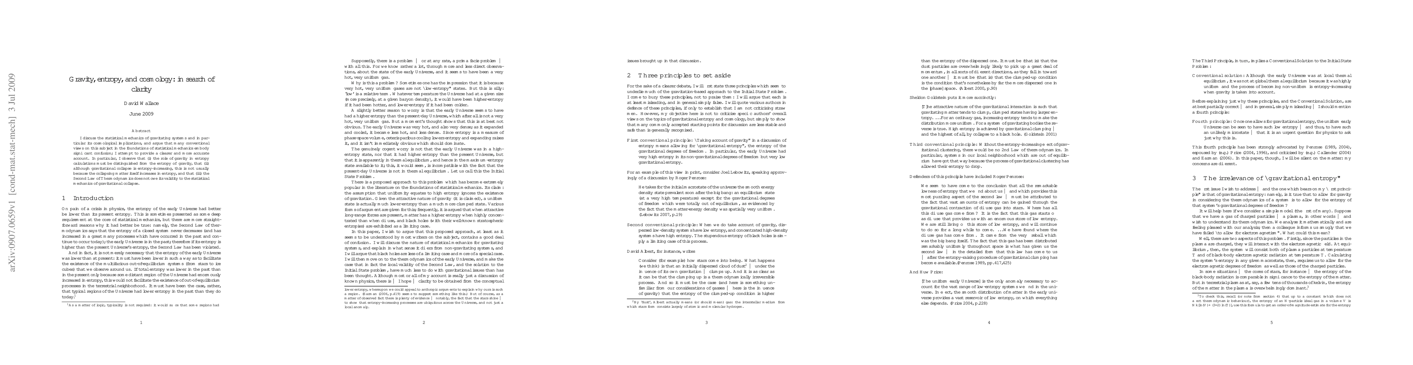 I discuss the statistical mechanics of gravitating systems and in particular its cosmological implications, and argue that many conventional views on this subject in the foundations of statistical mechanics embody significant confusion; I attempt to provide a clearer and more accurate account. In particular, I observe that (i) the role of gravity \emph{in} entropy calculations must be distinguished from the entropy \emph{of} gravity, that (ii) although gravitational collapse is entropy-increasing, this is not usually because the collapsing matter itself increases in entropy, and that (iii) the Second Law of Thermodynamics does not owe its validity to the statistical mechanics of gravitational collapse.