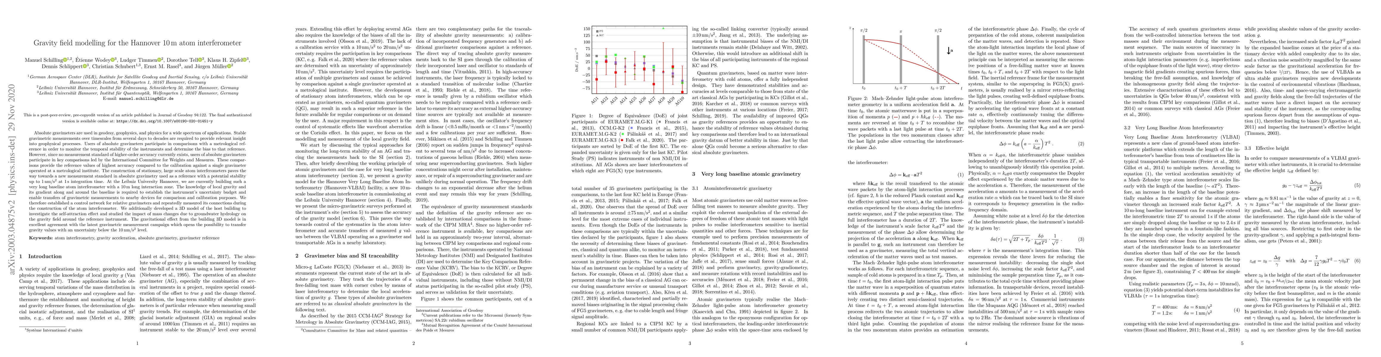 Absolute gravimeters (AG) are used in geodesy, geophysics, and physics for a wide spectrum of applications. Stable gravimetric measurements over timescales from several days to decades are required to provide relevant insight into geophysical processes. Users of AGs participate in comparisons with a metrological reference in order to monitor the temporal stability of the instruments and determine the bias to that reference. However, since no measurement standard of higher-order accuracy currently exists, users of AGs participate in key comparisons led by the CIPM. These comparisons provide the reference values of highest accuracy compared to the calibration against a single AG. The construction of stationary, large scale atom interferometers paves the way towards a new measurement standard in absolute gravimetry used as a reference with a potential stability up to 1 nm/s$^2$ at 1 s integration time. At the Leibniz University Hannover, we are currently building such a very long baseline atom interferometer with a 10 m long interaction zone. The knowledge of local gravity and its gradient along and around the baseline is required to establish the instrument's uncertainty budget and enable transfers of gravimetric measurements to nearby devices for comparison and calibration purposes. We therefore established a control network for relative gravimeters and repeatedly measured its connections during the construction of the atom interferometer. We additionally developed a 3D model of the host building to investigate the self-attraction effect and studied the impact of mass changes due to groundwater hydrology on the gravity field around the reference instrument. The gravitational effect from the building 3D model is in excellent agreement with the latest gravimetric measurement campaign which opens the possibility to transfer gravity values with an uncertainty below the 10 nm/s$^2$ level.