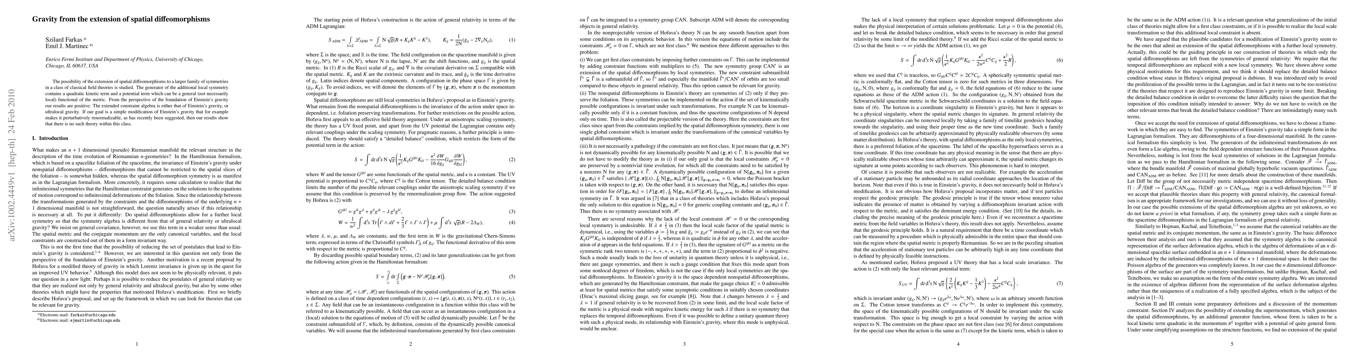 This paper explores extending spatial diffeomorphisms to broader symmetries in classical field theories, revealing that the resulting constraint algebra aligns with Einstein's gravity or ultralocal gravity. It concludes that no simple modifications within this framework can achieve perturbatively renormalizable versions of Einstein's gravity.