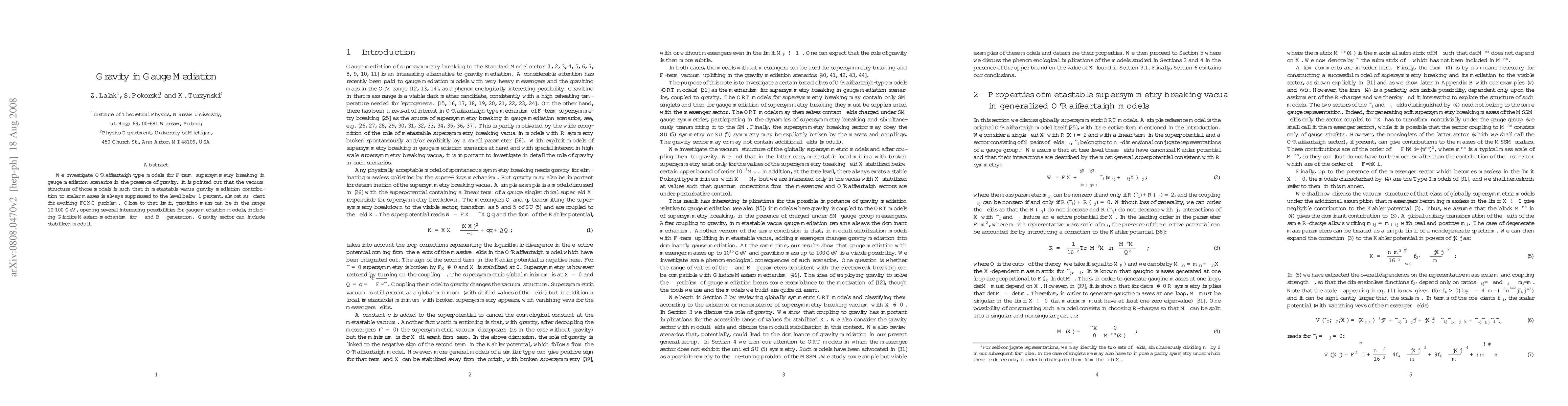 This research explores O'Raifeartaigh-type models for F-term supersymmetry breaking in gauge mediation with gravity, revealing that gravity mediation suppresses scalar masses below 1%, addressing the FCNC problem, and allows for gravitino masses in the 10-100 GeV range, facilitating the Giudice-Masiero mechanism for generating mu and Bmu, with stabilized moduli in the gravity sector.