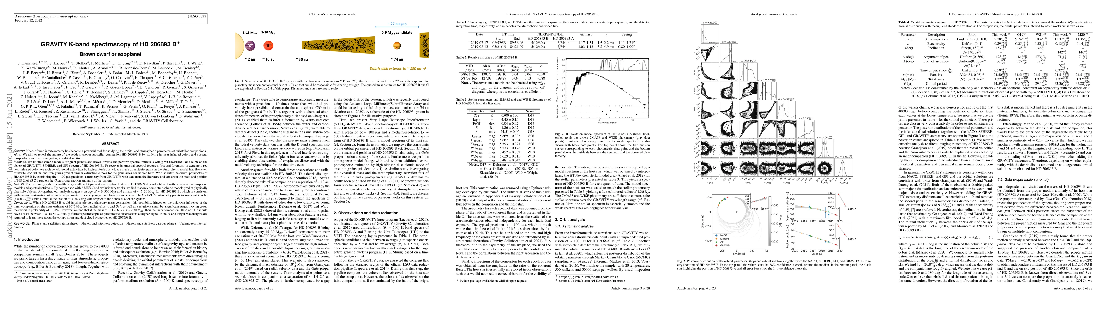 We aim to reveal the nature of the reddest known substellar companion HD 206893 B by studying its near-infrared colors and spectral morphology and by investigating its orbital motion. We fit atmospheric models for giant planets and brown dwarfs and perform spectral retrievals with petitRADTRANS and ATMO on the observed GRAVITY, SPHERE, and GPI spectra of HD 206893 B. To recover its unusual spectral features, we include additional extinction by high-altitude dust clouds made of enstatite grains in the atmospheric model fits. We also infer the orbital parameters of HD 206893 B by combining the $\sim 100~\mu\text{as}$ precision astrometry from GRAVITY with data from the literature and constrain the mass and position of HD 206893 C based on the Gaia proper motion anomaly of the system. The extremely red color and the very shallow $1.4~\mu\text{m}$ water absorption feature of HD 206893 B can be fit well with the adapted atmospheric models and spectral retrievals. Altogether, our analysis suggests an age of $\sim 3$-$300~\text{Myr}$ and a mass of $\sim 5$-$30~\text{M}_\text{Jup}$ for HD 206893 B, which is consistent with previous estimates but extends the parameter space to younger and lower-mass objects. The GRAVITY astrometry points to an eccentric orbit ($e = 0.29^{+0.06}_{-0.11}$) with a mutual inclination of $< 34.4~\text{deg}$ with respect to the debris disk of the system. While HD 206893 B could in principle be a planetary-mass companion, this possibility hinges on the unknown influence of the inner companion on the mass estimate of $10^{+5}_{-4}~\text{M}_\text{Jup}$ from radial velocity and Gaia as well as a relatively small but significant Argus moving group membership probability of $\sim 61\%$. However, we find that if the mass of HD 206893 B is $< 30~\text{M}_\text{Jup}$, then the inner companion HD 206893 C should have a mass between $\sim 8$-$15~\text{M}_\text{Jup}$.