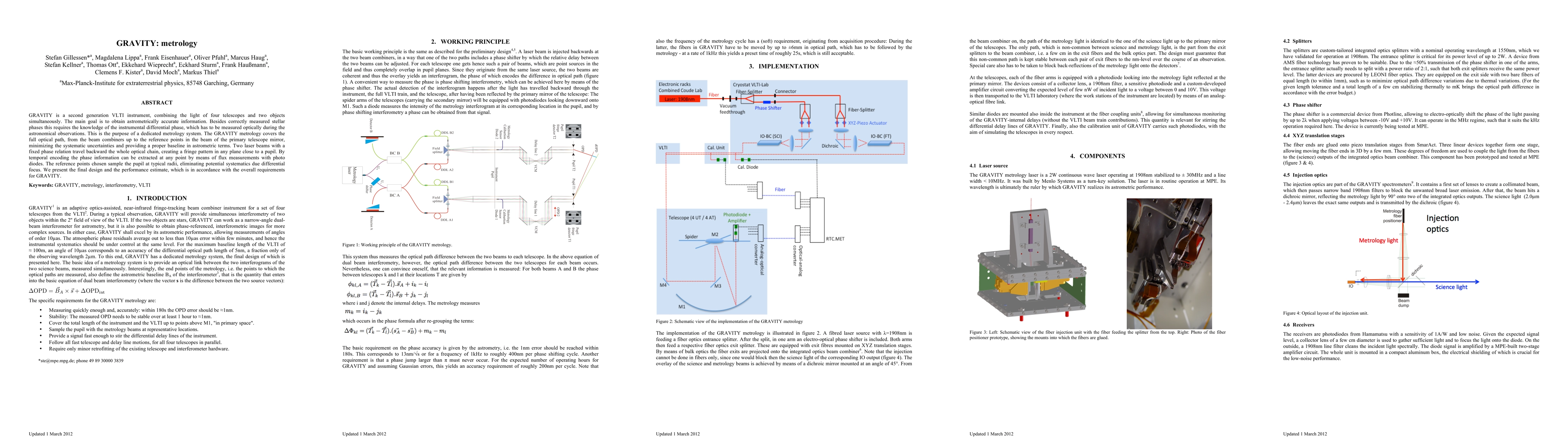 GRAVITY, a VLTI instrument, employs a metrology system to measure instrumental differential phase accurately, combining light from four telescopes. This system uses laser beams to create a fringe pattern, enabling precise astrometric information extraction and minimizing systematic uncertainties.