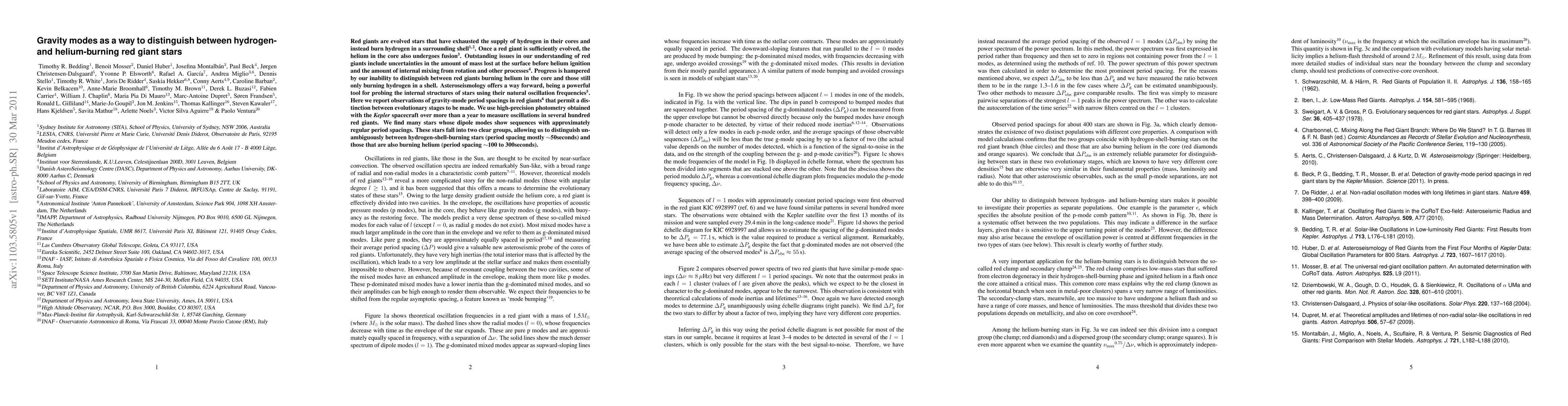 The research utilized high-precision photometry from the Kepler spacecraft over more than a year to measure oscillations in several hundred red giants. It focused on gravity-mode period spacings to distinguish between red giants burning helium in the core and those still burning hydrogen in a shell.