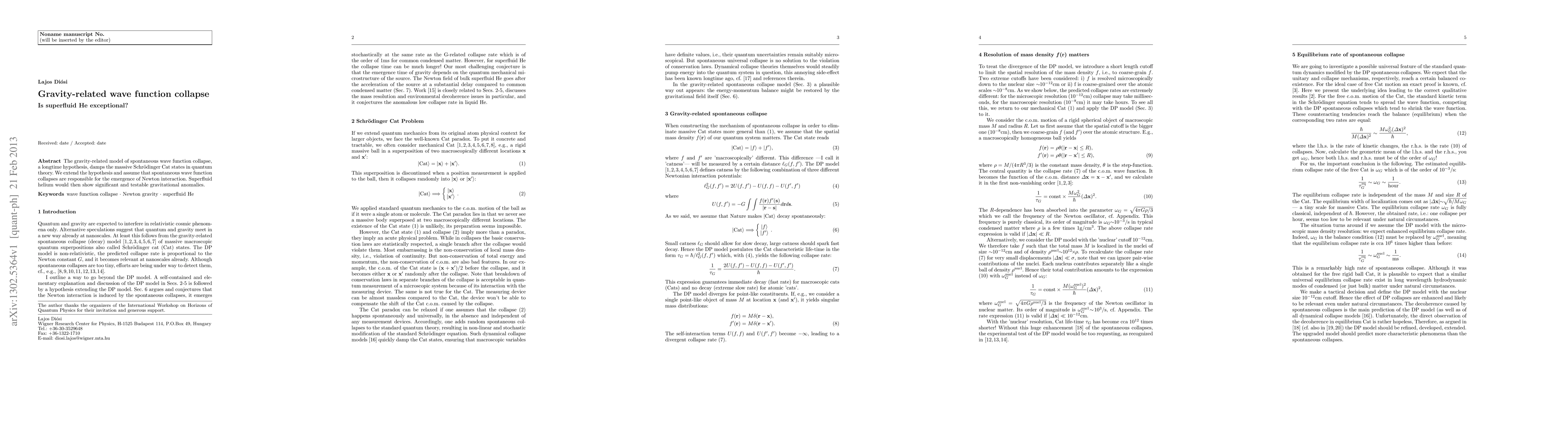 Summary: This paper explores a gravity-related model of spontaneous wave function collapse, suggesting that such collapses could lead to Newton interaction and predict significant gravitational anomalies in superfluid helium, potentially distinguishing it from other materials.