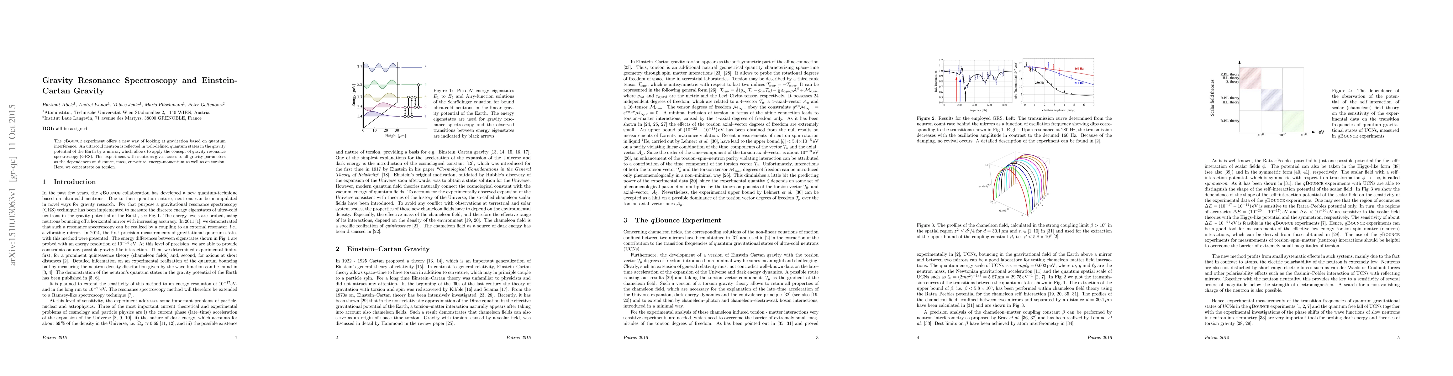 The qBounce experiment introduces Gravity Resonance Spectroscopy (GRS) using ultracold neutrons reflecting off a mirror, offering new insights into gravitation. This method reveals the effects of torsion, a key parameter in Einstein-Cartan gravity, accessible through quantum interference observations.
