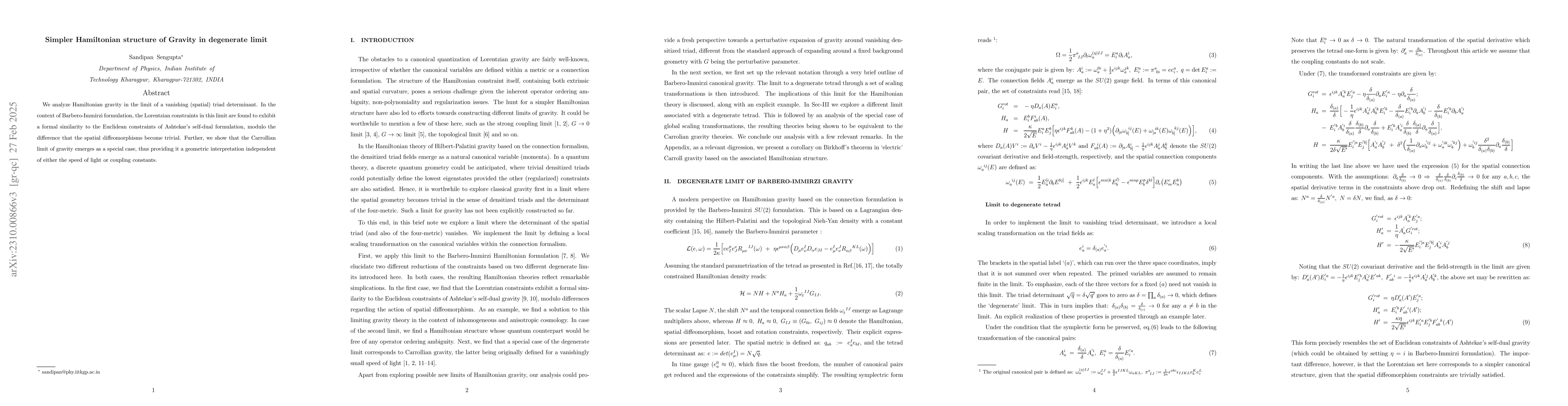 We unravel the structure of gravity theory in the limit to a curvature singularity, approached through a vanishing spatial metric determinant. The resulting canonical formulation is remarkably simple, having no spatial diffeomorphism constraint and exhibiting a purely algebraic Hamiltonian constraint free of the spatial three-curvature. Based on this, we propose a natural resolution to the horizon problem in cosmology. This limit implies a regular approach to singularity and predicts a stiff phase (w = 1) right after the big bang. This suggests an alternate scenario compared to the Belinski-Khalatnikov-Lifshitz (BKL) oscillatory approach. We also find that the Birkhoff theorem is violated in this limit. The essential inequivalence of this limit to the Carrollian limit of gravity, which is shown to share this (last) feature, is elucidated.