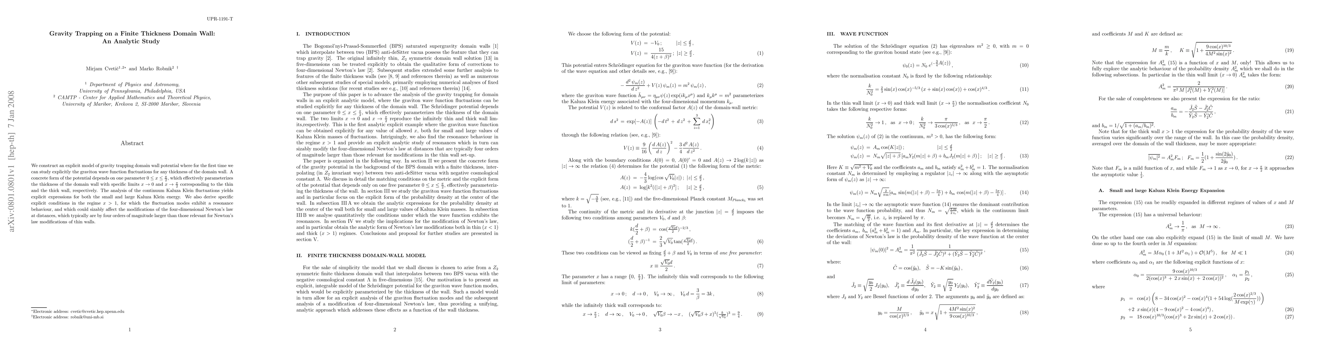 We construct an explicit model of gravity trapping domain wall potential where for the first time we can study explicitly the graviton wave function fluctuations for any thickness of the domain wall. A concrete form of the potential depends on one parameter 0 <= x <= pi/2, which effectively parameterizes the thickness of the domain wall with specific limits x -> 0 and x -> pi/2 corresponding to the thin and the thick wall, respectively. The analysis of the continuum Kaluza Klein fluctuations yields explicit expressions for both the small and large Kaluza Klein energy. We also derive specific explicit conditions in the regime x > 1, for which the fluctuation modes exhibit a resonance behaviour, and which could sizably affect the modifications of the four-dimensional Newton's law at distances, which typically are by four orders of magnitude larger than those relevant for Newton's law modifications of thin walls.