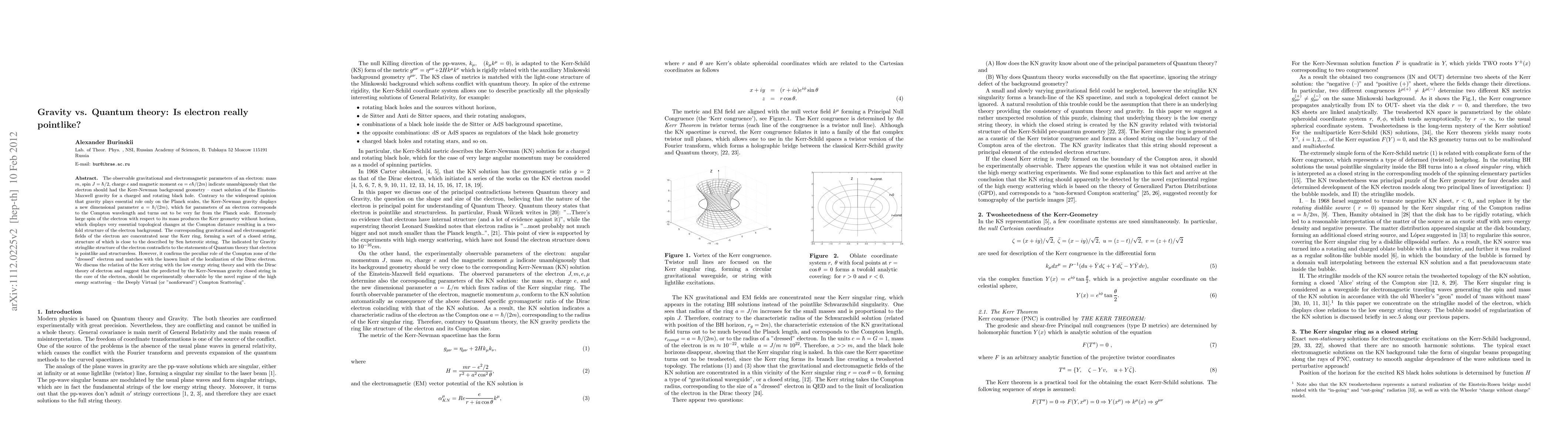 The electron's spin produces a Kerr geometry without horizon, indicating it has a string-like structure, contradicting the pointlike assumption of Quantum theory.