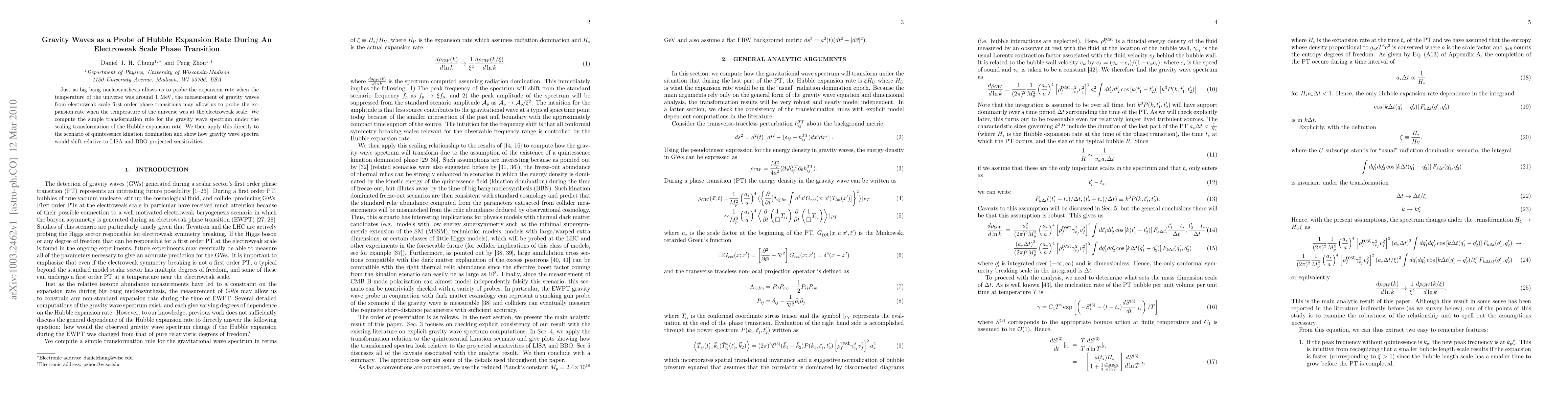 Just as big bang nucleosynthesis allows us to probe the expansion rate when the temperature of the universe was around 1 MeV, the measurement of gravity waves from electroweak scale first order phase transitions may allow us to probe the expansion rate when the temperature of the universe was at the electroweak scale. We compute the simple transformation rule for the gravity wave spectrum under the scaling transformation of the Hubble expansion rate. We then apply this directly to the scenario of quintessence kination domination and show how gravity wave spectra would shift relative to LISA and BBO projected sensitivities.