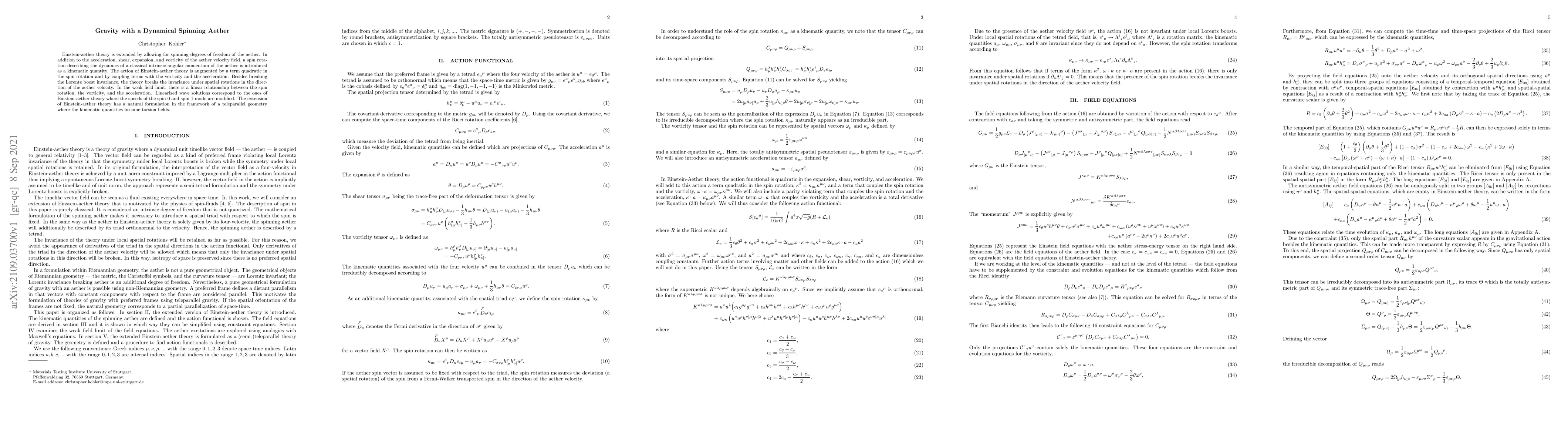 This paper extends Einstein-aether theory by introducing spinning degrees of freedom for the aether, adding a spin rotation to describe its intrinsic angular momentum. The theory modifies the speeds of spin 0 and spin 1 modes and breaks Lorentz boost and spatial rotation invariances.