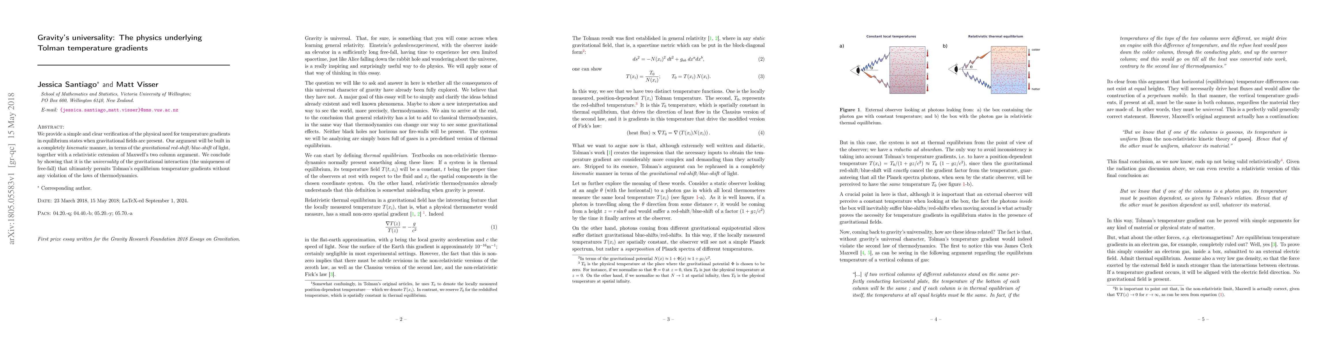 The research provides a novel interpretation of Tolman's original argument and demonstrates that temperature gradients are necessary to maintain equilibrium temperatures when gravity is present.