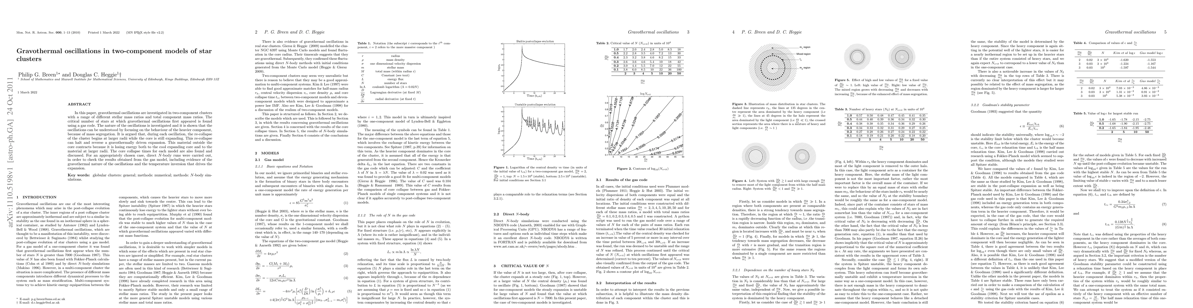 In this paper, gravothermal oscillations are investigated in two-component clusters with a range of different stellar mass ratios and total component mass ratios. The critical number of stars at which gravothermal oscillations first appeared is found using a gas code. The nature of the oscillations is investigated and it is shown that the oscillations can be understood by focusing on the behaviour of the heavier component, because of mass segregation. It is argued that, during each oscillation, the re-collapse of the cluster begins at larger radii while the core is still expanding. This re-collapse can halt and reverse a gravothermally driven expansion. This material outside the core contracts because it is losing energy both to the cool expanding core and to the material at larger radii. The core collapse times for each model are also found and discussed. For an appropriately chosen case, direct N -body runs were carried out, in order to check the results obtained from the gas model, including evidence of the gravothermal nature of the oscillations and the temperature inversion that drives the expansion.