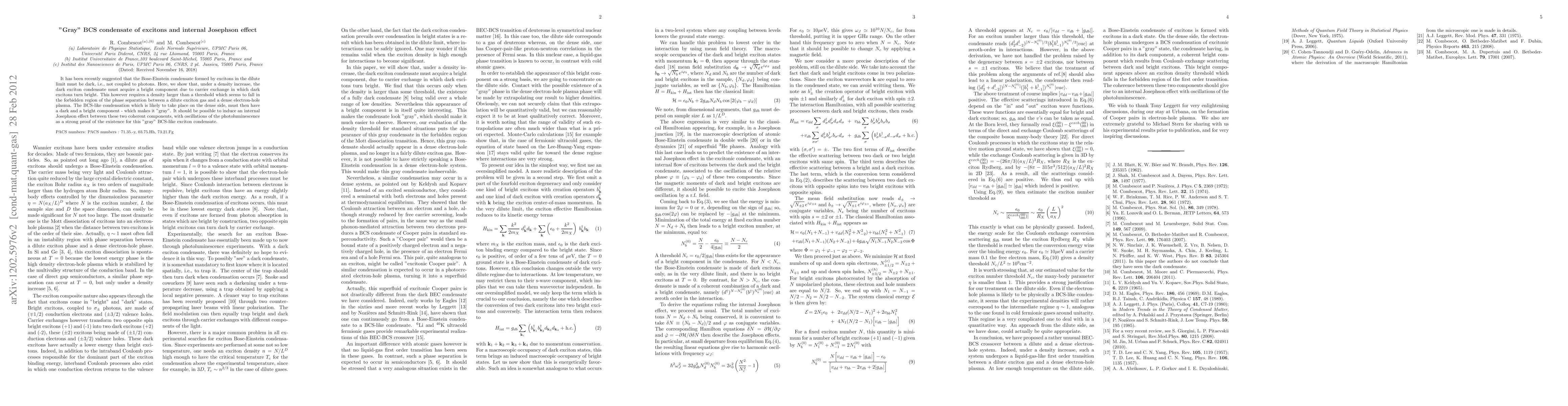 It has been recently suggested that the Bose-Einstein condensate formed by excitons in the dilute limit must be dark, i.e., not coupled to photons. Here, we show that, under a density increase, the dark exciton condensate must acquire a bright component due to carrier exchange in which dark excitons turn bright. This however requires a density larger than a threshold which seems to fall in the forbidden region of the phase separation between a dilute exciton gas and a dense electron-hole plasma. The BCS-like condensation which is likely to take place on the dense side, must then have a dark and a bright component - which makes it "gray". It should be possible to induce an internal Josephson effect between these two coherent components, with oscillations of the photoluminescence as a strong proof of the existence for this "gray" BCS-like exciton condensate.