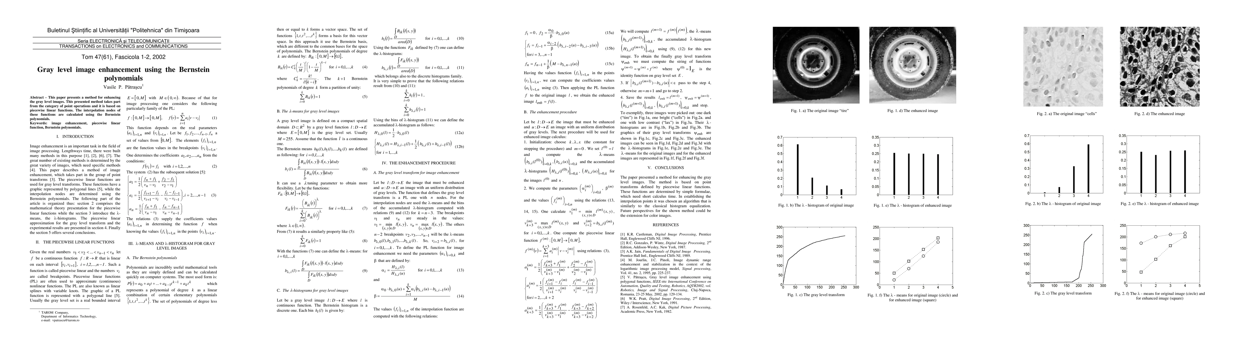 This paper presents a method for enhancing the gray level images. This presented method takes part from the category of point operations and it is based on piecewise linear functions. The interpolation nodes of these functions are calculated using the Bernstein polynomials.