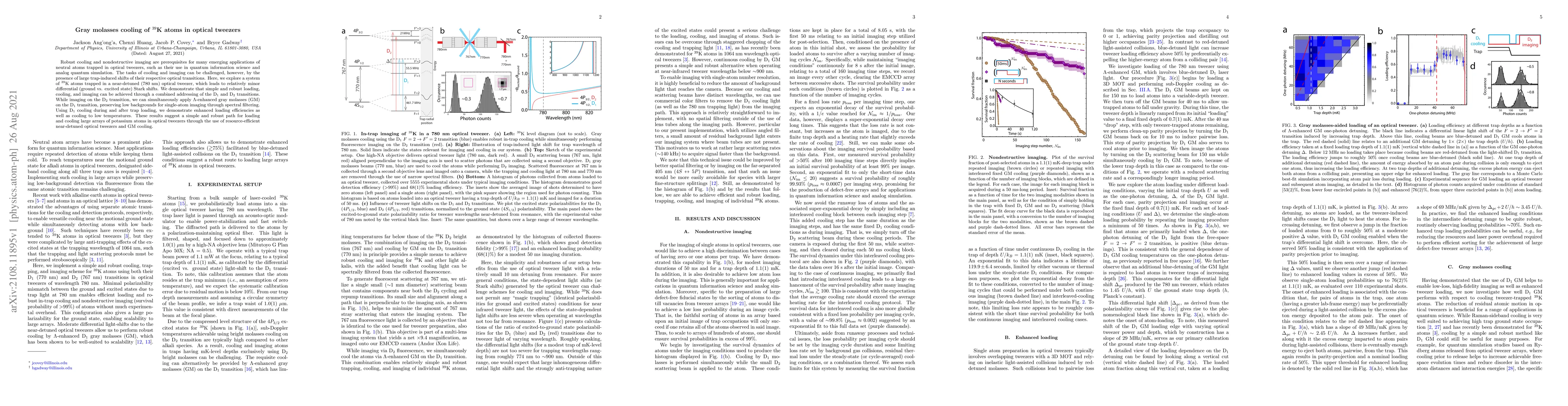 This paper demonstrates robust cooling and nondestructive imaging of $^{39}$K atoms in optical tweezers using $\Lambda$-enhanced gray molasses on the D$_\textrm{1}$ transition, showing enhanced loading efficiencies and low-temperature cooling, thereby offering a simple path for large-scale quantum applications.