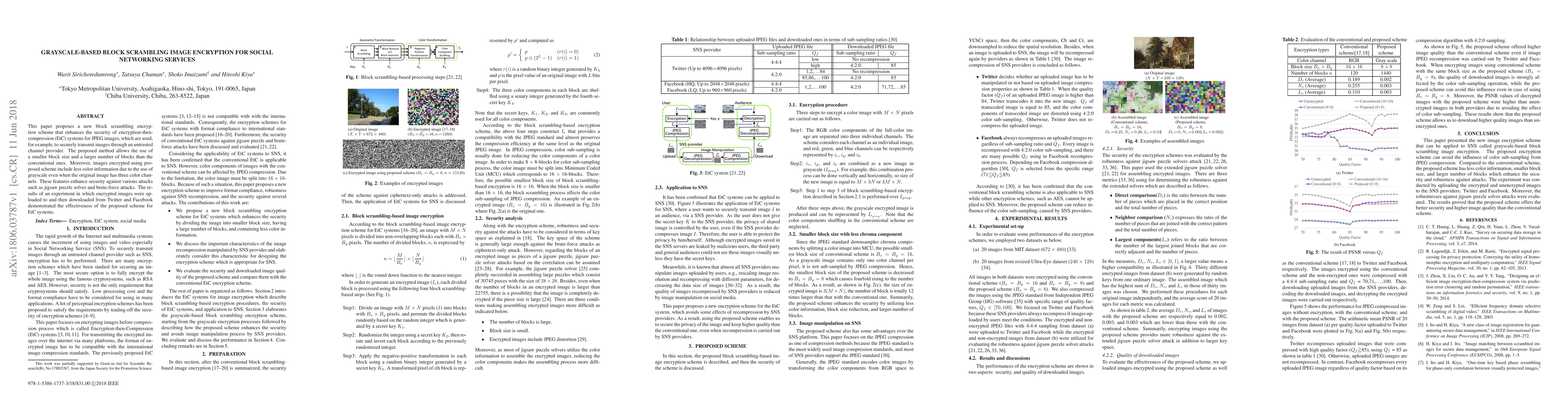 This paper introduces a grayscale-based block scrambling encryption scheme to improve the security of encryption-then-compression systems for JPEG images, allowing smaller block sizes and reducing color information. Experiments on social media platforms show its effectiveness against various attacks.