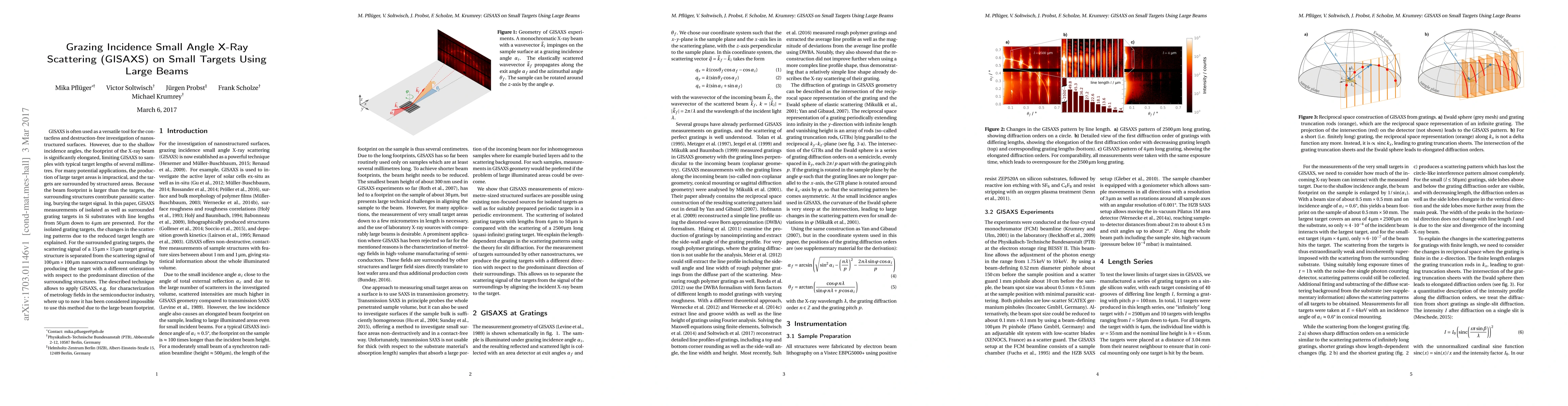 This research introduces a method to perform Grazing Incidence Small Angle X-Ray Scattering (GISAXS) on small targets using large beams, enabling the analysis of nanostructures with line lengths down to 4 micrometers. The technique involves orienting the target differently relative to surrounding structures to separate the target's scattering signal, opening applications in fields like semiconductor metrology where large beam footprints previously hindered GISAXS use.
