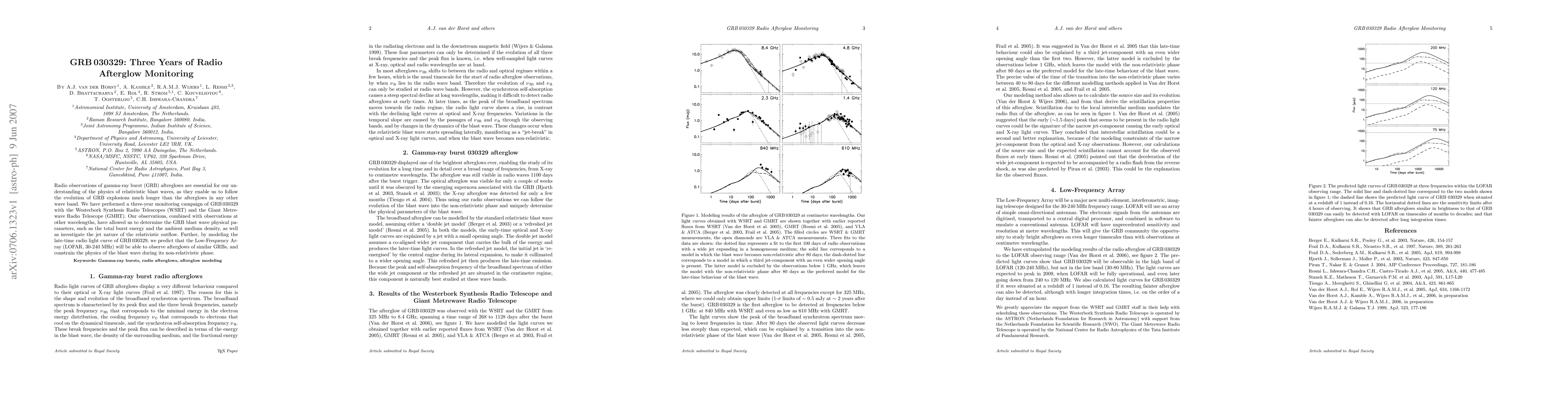 This paper reports on three years of radio afterglow monitoring of GRB 030329 using the WSRT and GMRT, revealing the blast wave's physical parameters and the nature of the relativistic jet. The study predicts that future observations with LOFAR will further constrain the blast wave's physics during its non-relativistic phase.