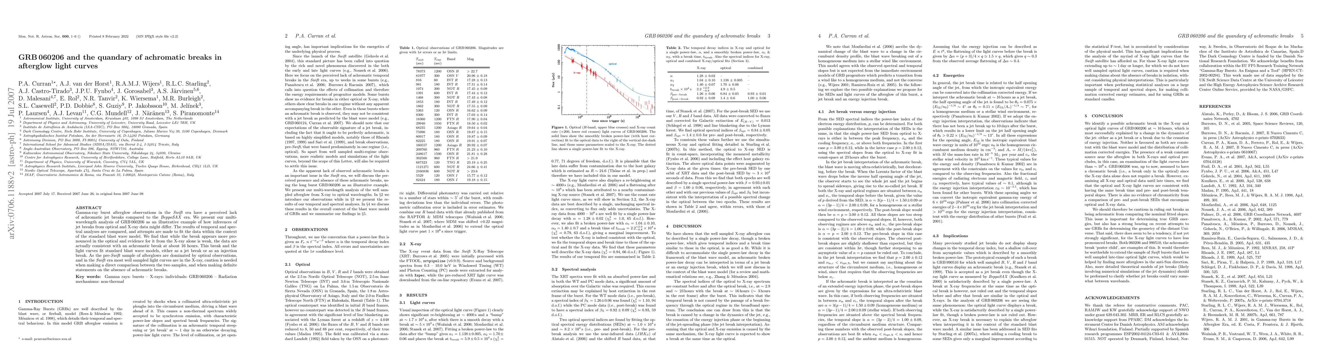 A possible achromatic break in the X-ray and optical light curves of GRB 060206 at Ñ16 hours was identified.