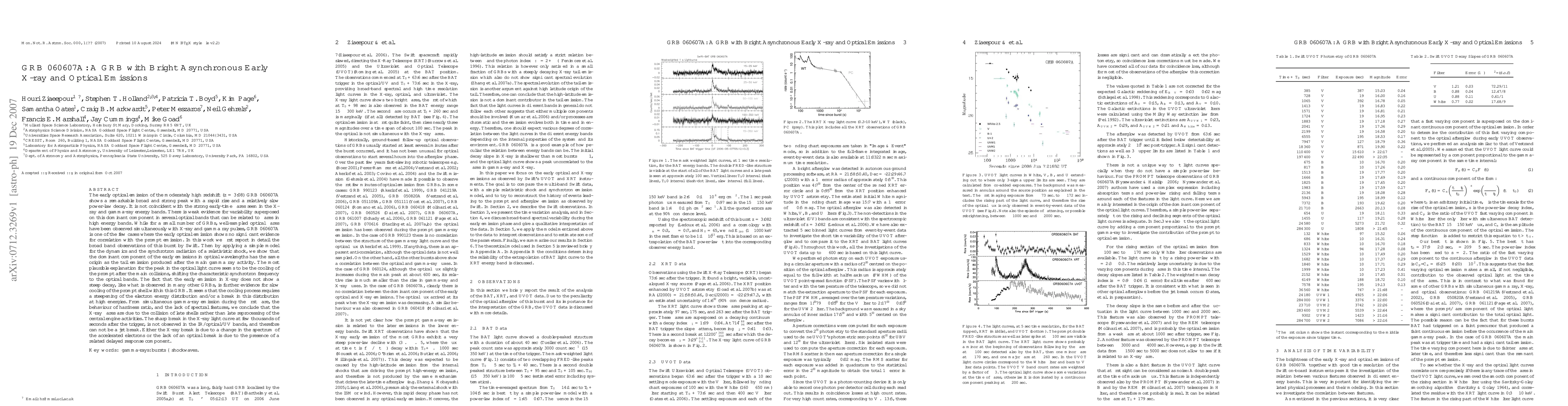 This paper investigates the asynchronous early X-ray and optical emissions of the GRB 060607A, noting the lack of correlation between the optical peak and X-ray flares. The study suggests that the optical peak results from the cooling of the relativistic shock, while the X-ray break may indicate a change in electron spectrum or a delayed response component.