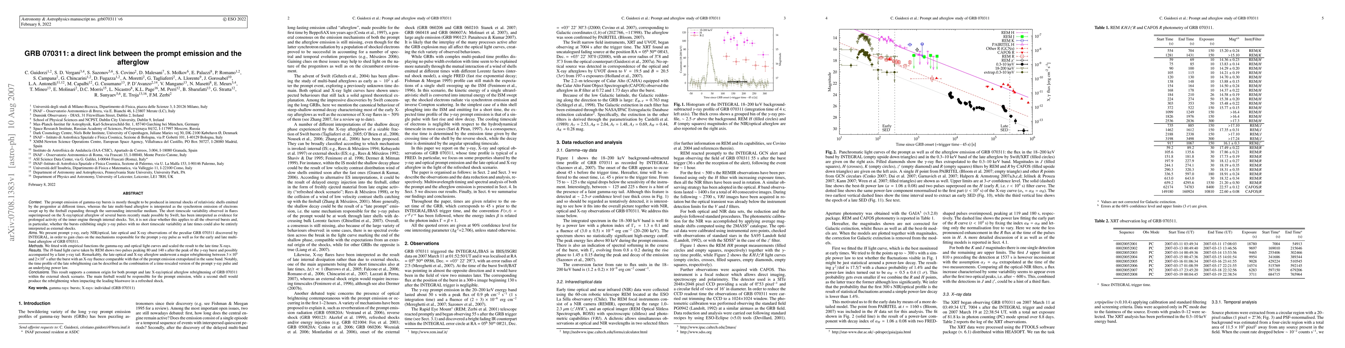 This paper investigates the peculiar GRB 070311, revealing a direct link between its prompt gamma-ray emission and its late X-ray/optical afterglow rebrightening. The study suggests a common origin for both phenomena within the external shock scenario, implicating a second shell impacting the leading blastwave in a refreshed shock.