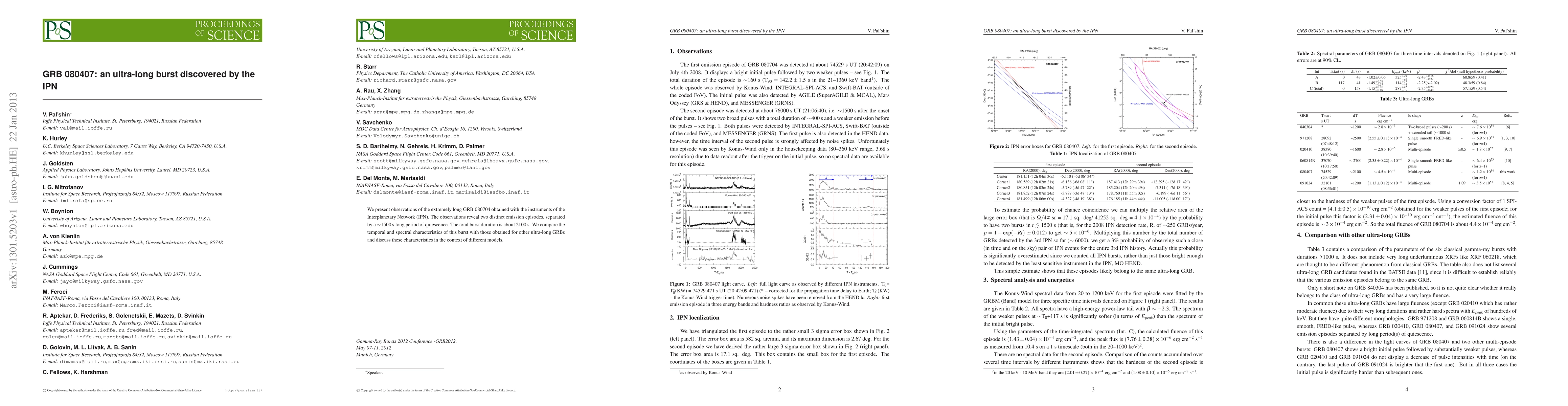 We present observations of the extremely long GRB 080704 obtained with the instruments of the Interplanetary Network (IPN). The observations reveal two distinct emission episodes, separated by a ~1500 s long period of quiescence. The total burst duration is about 2100 s. We compare the temporal and spectral characteristics of this burst with those obtained for other ultra-long GRBs and discuss these characteristics in the context of different models.